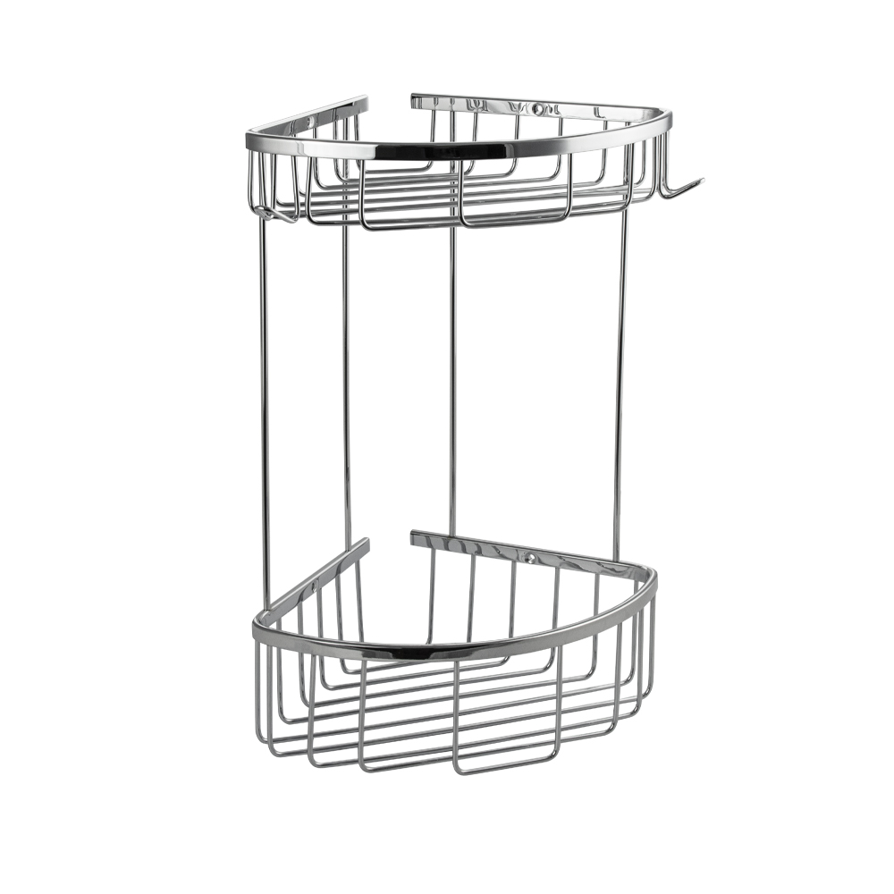 Полочка угловая, овальная, двухэтажная, для принадлежностей, решётка обладает высокими эксплуатационными характеристиками и подходит для использования дома, в общественных местах: отелях, ресторанах и пр. Изготовлена из прочной нержавеющей стали с хромоникелевым покрытием, которое придает безупречный глянцевый блеск и долговечность. Металлическая полка оснащена крючкоми. Аксессуар не занимает много места, надежно фиксируется к стене при помощи набора креплений (входят в комплект) и служит удобным местом для хранения бытовых и косметических средств. Габаритные размеры: высота 350 мм, ширина 250 мм, глубина 180 мм, расстояние между полками 220 мм, высота верхей полки 50 мм, высота нижней полки 80 мм. Вес - 1,0 кг, объём - 0,00990 м3.
