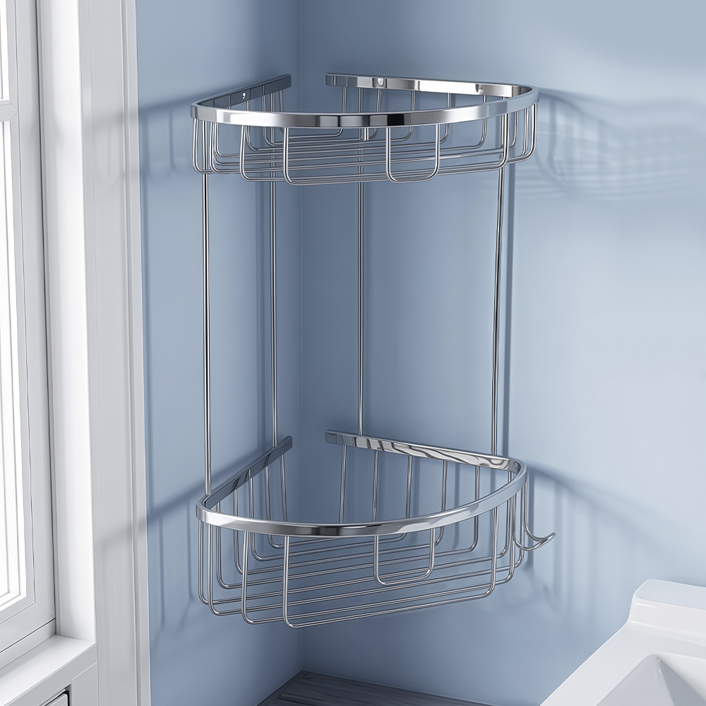 Полочка угловая овальная двухэтажная для принадлежностей, решётка обладает высокими эксплуатационными характеристиками и подходит для использования дома, в общественных местах: отелях, ресторанах и пр. Изготовлена из прочной нержавеющей стали с хромоникелевым покрытием, которое придает безупречный глянцевый блеск и долговечность. Металлическая полка оснащена крючком. Аксессуар не занимает много места, надежно фиксируется к стене при помощи набора креплений (входят в комплект) и служит удобным местом для хранения бытовых и косметических средств. Габаритные размеры: высота 350 мм, ширина 280 мм, длина стороны 220 мм, расстояние между полками 230 мм. Вес - 1,500 кг, объём - 0,02220 м3.