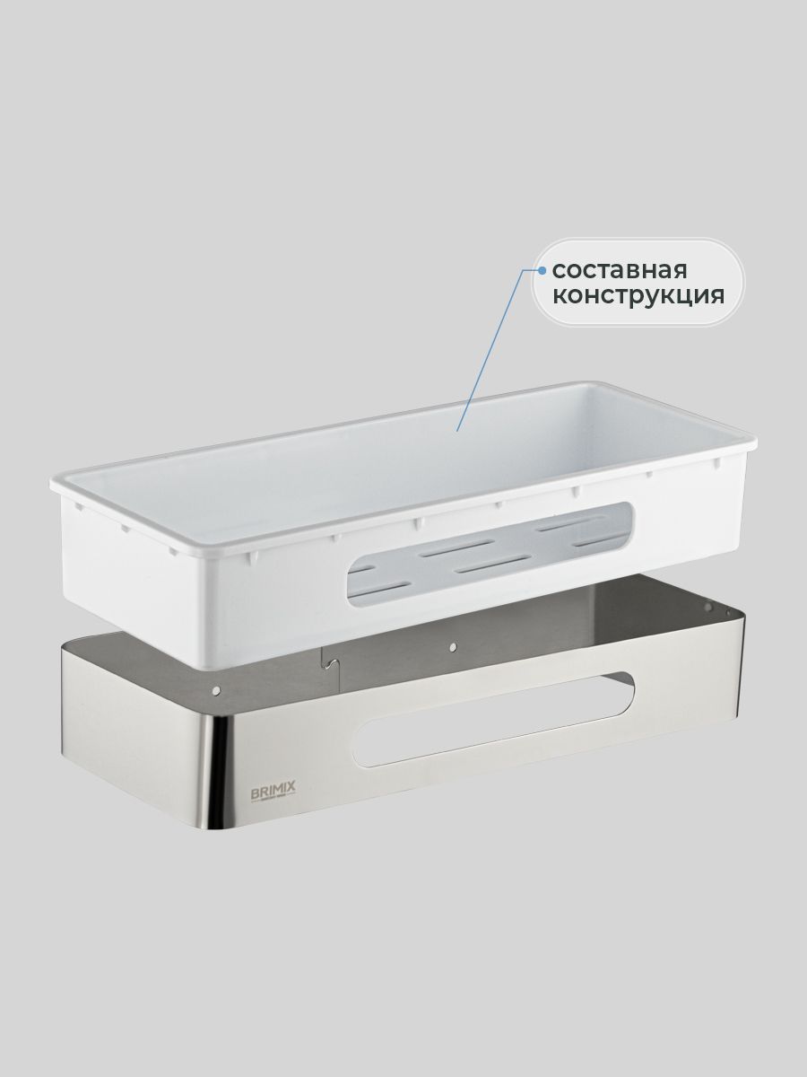 Полочка для принадлежностей, прямоугольная, с литым дном, однаэтажная, с белым пластиковым вкладышем, обладает высокими эксплуатационными характеристиками и подходит для использования дома, в общественных местах: отелях, ресторанах и пр. Изготовлена из нержавеющей стали с хромированным покрытием, которое придает безупречный вид и долговечность. Аксессуар не занимают много места, надежно фиксируется к стене при помощи набора креплений (входят в комплект) и служит удобным местом для хранения бытовых и косметических средств. Габаритные размеры: длина 350 мм, высота 60 мм, глубина 140 мм. Вес - 0,900 кг, объём - 0,00474 м3.