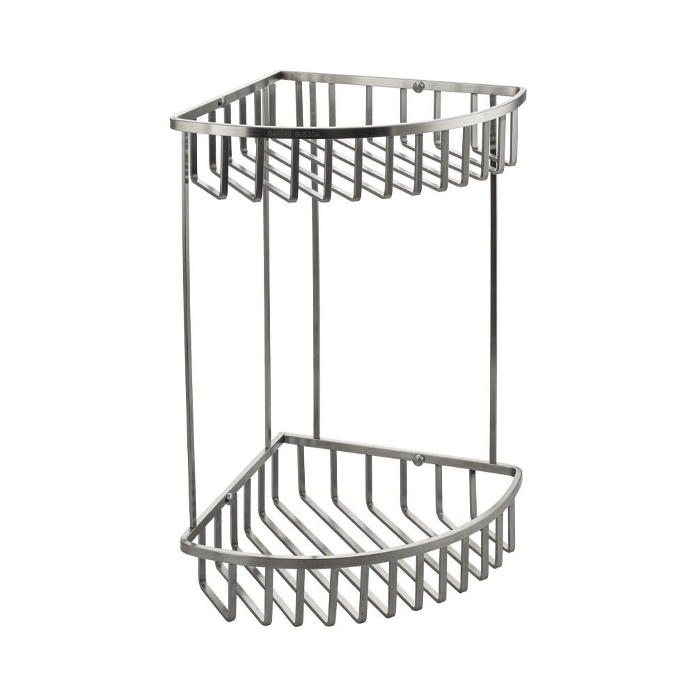 Полочка угловая, овальная, двухэтажная, для принадлежностей, решётка с плоскими толстыми прутьями, обладает высокими эксплуатационными характеристиками и подходит для использования дома, в общественных местах: отелях, ресторанах и пр. Изготовлена из прочной нержавеющей стали с матовым покрытием, которое придает безупречный внешний вид и долговечность. Аксессуар не занимает много места, надежно фиксируется к стене при помощи набора креплений (входят в комплект) и служит удобным местом для хранения бытовых и косметических средств. Габаритные размеры: высота 360 мм, ширина 270 мм, глубина 200 мм, расстояние между полками 250 мм. Вес - 1,200 кг, объём - 0,01020 м3.