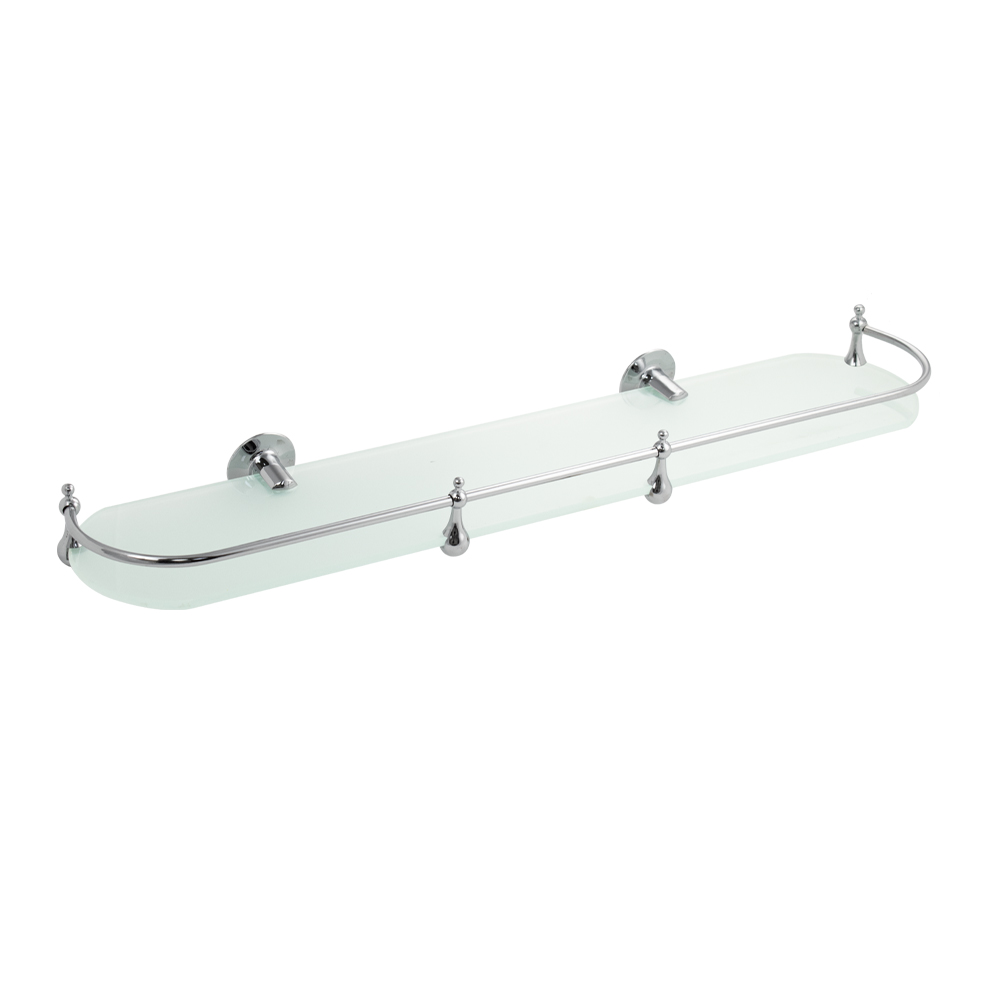 Прямоугольная полка из матового стекла толщиной 5 мм с полированными краями о которые невозможно порезаться, с надежной фиксацией к стене с помощью крепления из металла, с хромированным покрытием, идеально подходит для хранения различных ванных принадлежностей. Полочка изготовлена из качественного матового стекла и имеет бортик, предотвращающий падение ванных принадлежностей. Полка для ванной функциональное и практичное решение для любого интерьера. Хромированное покрытие креплений очень стойко переносит истирания и обеспечивает зеркальный блеск изделия. Идеально подойдет не только для ванной, но и для кухни. Изделие крепится к стене с помощью дюбелей и саморезов (входят в комплект). Габаритные размеры: ширина 600 мм, глубина 120 мм, высота 50 мм, диаметр посадочного седла 50 мм. Вес - 1,400 кг, объём - 0,00590 м3.