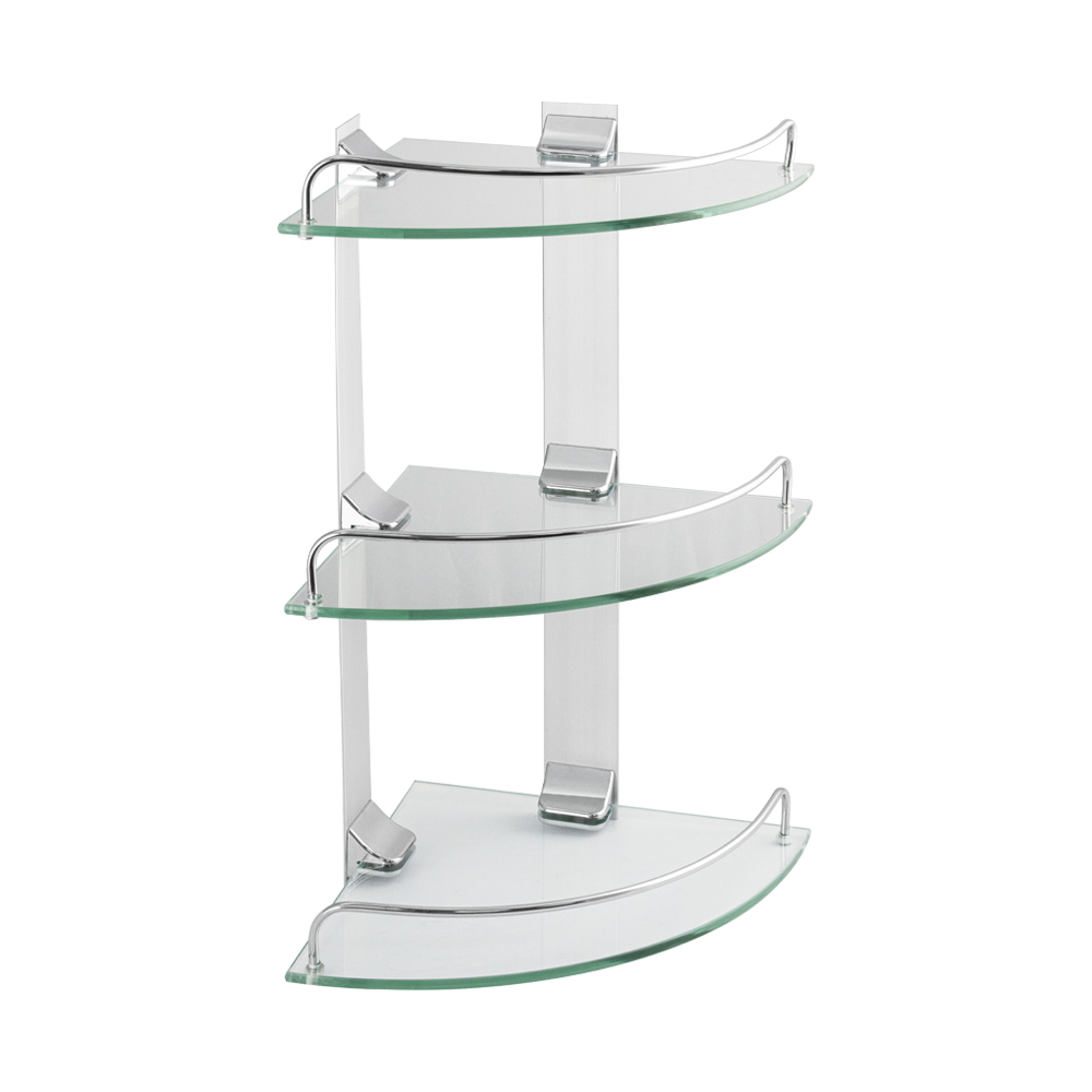 Подвесная трёхэтажная угловая полка для ванной из прочного стекла, толщиной 5 мм с полированными краями о которые невозможно порезаться, с надежной фиксацией к стене с помощью крепления из металла с хромированным покрытием, идеально подходит для хранения различных ванных принадлежностей. Полочка изготовлена из качественного стекла и имеет бортик, предотвращающий падение ванных принадлежностей. Полка для ванной функциональное и практичное решение для любого интерьера. Хромированное покрытие креплений очень стойко переносит истирания и обеспечивает зеркальный блеск изделия. Идеально подойдет не только для ванной, но и для кухни. Изделие крепится к стене с помощью дюбелей и саморезов (входят в комплект). Габаритные размеры: высота 480 мм, длина стороны 250 мм, ширина 320 мм, расстояние между полками 215 мм. Вес - 2,700 кг, объём - 0,00600 м3.