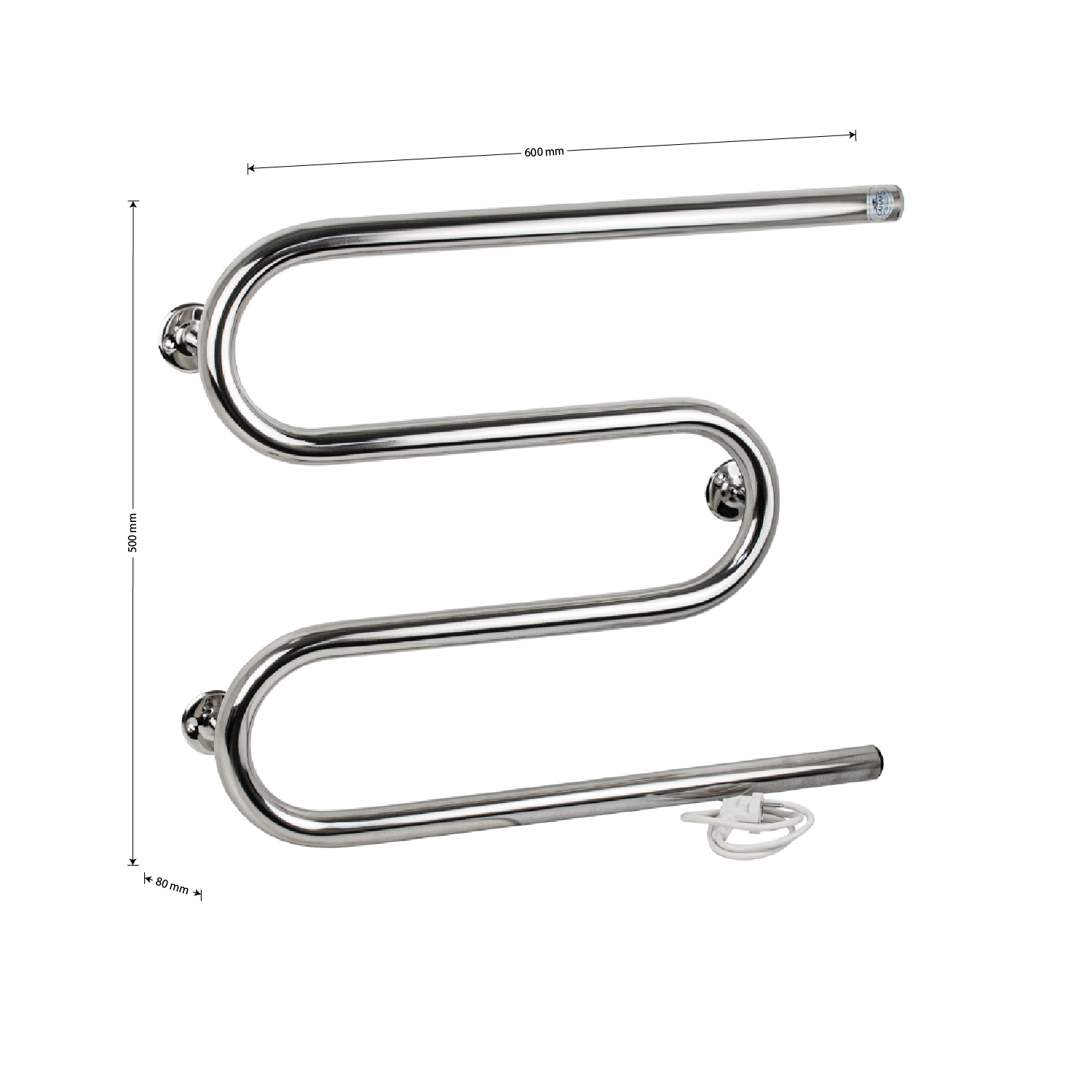 Полотенцесушитель электрический М-образный из нержавеющей стали, гармонично впишется в современный интерьер и поможет поддержать комфортную атмосферу в ванной комнате, работает вне зависимости от отопительного сезона, и его можно разместить в любом месте ванной или даже на стене в комнате. Хромированная поверхность устойчива к высоким температурам. Благодаря продуманному расположению труб можно размещать объемный текстиль, сократив время просушки. Установка и ремонт не требуют работы сантехников. Максимальная температура нагрева 45 °С. Габаритные размеры: высота 500 мм, ширина 600 мм, глубина 80 мм. С сухим ТЭНом, 70 W, 220-240 V, 50 Hz, t - 50°С, IP 44. Комплект: полотенцесушитель, комплект крепления, провод с евровилкой для подключения. Вес - 3,31 кг, объём - 0,03069 м3.