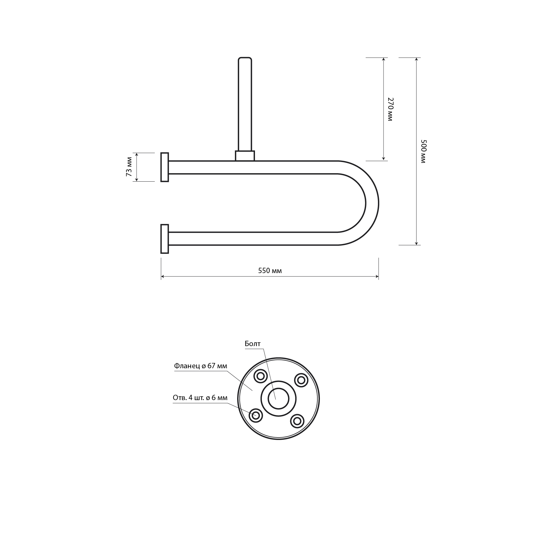 Поручень для инвалидов к писсуару. Изделие представляет собой эргономичное опорное устройство, предназначенное для установки над писсуаром. Выполнено из высококачественной нержавеющей стали AISI 304, что обеспечивает защиту от коррозии и продолжительный эксплуатационный период. Поручень выполнен из цельной трубы, не имеет видимых швов и соединений и является полностью травмобезопасным. Конструкция поручня имеет форму и ширину, удобную для захвата кистью руки, является травмобезопасной не имеет стыков на поверхности и острых углов. Габаритные размеры: ширина 600 мм, длина от стены 550 мм, высота 448 мм, расстояние между двумя параллельными поручнями 168 мм. Вес - 4,200 кг, объём - 0,00378 м3.