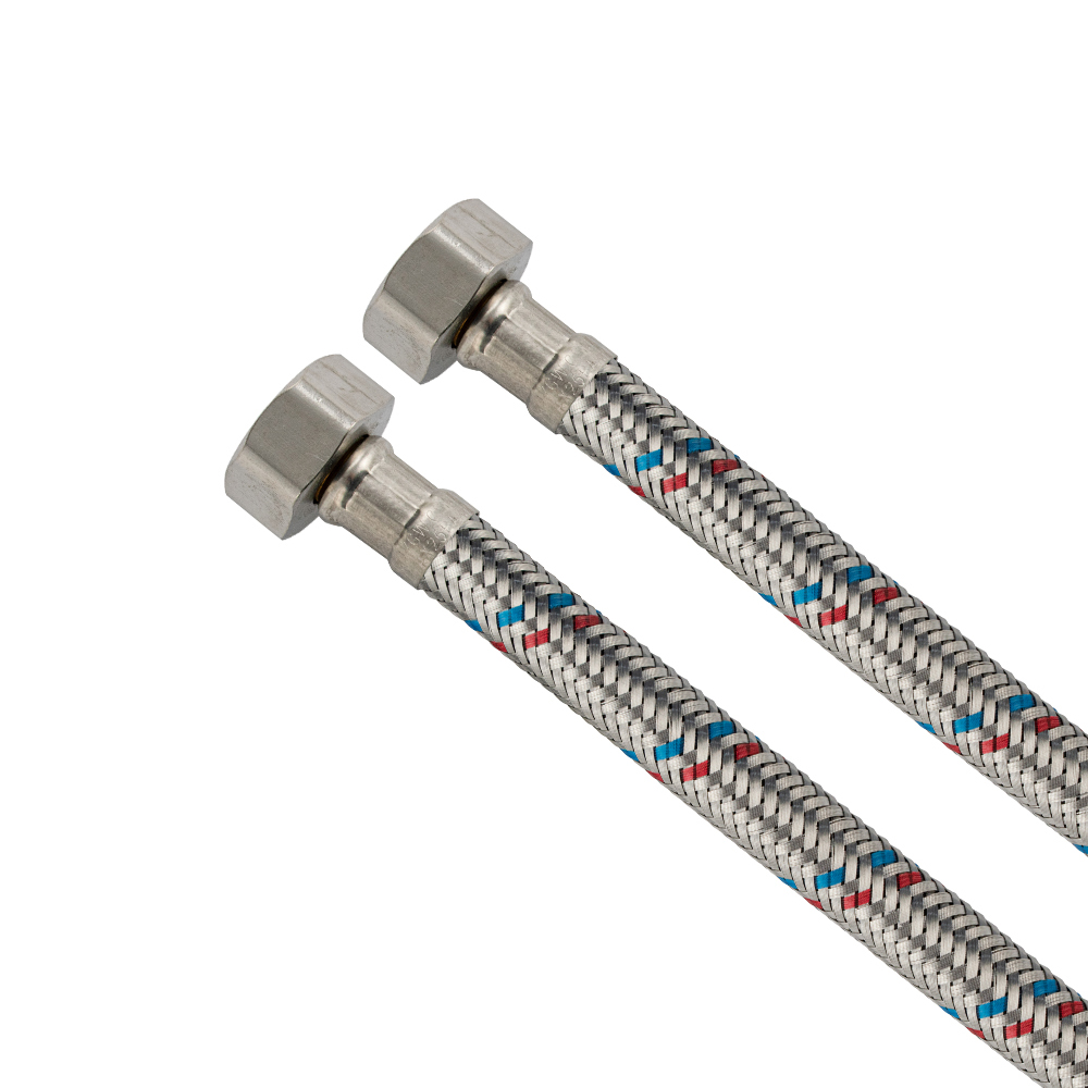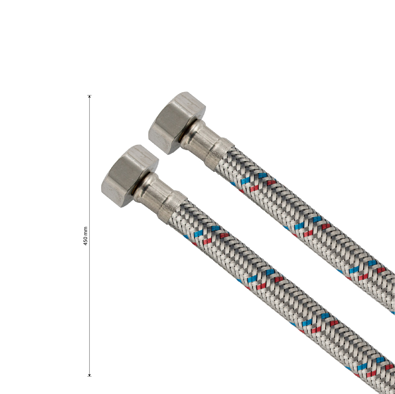 Гибкая подводка для воды, гайка - гайка, 1/2", 45 cм, с внутренней резьбой предназначена для присоединения к трубопроводам сантехнической арматуры и приборов сантехнического назначения (смесителей, душевых кабин, биде, умывальников, унитазов) и подводки воды к агрегатам бытового назначения (водонагревательным приборам, стиральным и посудомоечным машинам, насосам и тд). Оплетка гибкой подводки сплетена из 7 нитей из нержавеющей стали толщиной 0,2 мм. Материал оплетки нержавеющяя сталь. Внутренний шланг (трубка) изготовлен из специальной нетоксичной резины. Внутренний диаметр шланга – 8,5 мм ± 0,5 мм. Наружный диаметр шланга – 12,5 мм ± 0,5 мм. При установке гибкой подводки концевую арматуру необходимо затягивать с усилием не более 4 Нм. Вес - 0,200 кг, объём - 0,00016 м3.