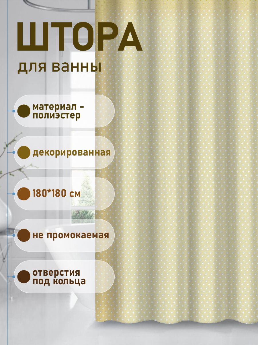 Штора в ванную комнату двойная, однотонная БЕЖЕВАЯ 120см х 180см х 2 штуки, полиэстэр