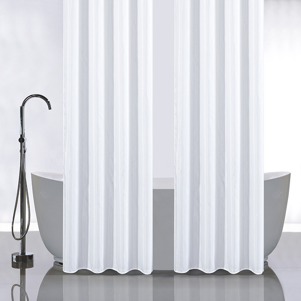 Красиво декорированная однотонная двойная шторка белого цвета в ванную и душевую комнаты - текстурная, защищающая пол и оборудование ванной комнаты от брызг воды, изготовлена из полиэстера и обладает выраженными водоотталкивающими свойствами. Занавеска для ванной имеет в верхней части 12 отверстей обработанных на оверлоке. Такие шторки не боятся влаги и не смываются даже очень горячей водой. Водоотталкивающие шторы для ванной, пошитые из ткани плотностью 80 г/м2, не придется дополнительно утяжелять - они расправятся под своим весом и не будут липнуть к телу принимающего душ человека. При заказе данных изделий следует учесть, что яркость и оттенок рисунка на ткани могут несколько отличаться от изображения на экране монитора, а также допустимо отклонение в размерах полотна в пределах 5 см. Ширина шторы 120 см, высота 180 см.в комплекте две штуки. Вес - 0,600 кг, объём - 0,00200 м3