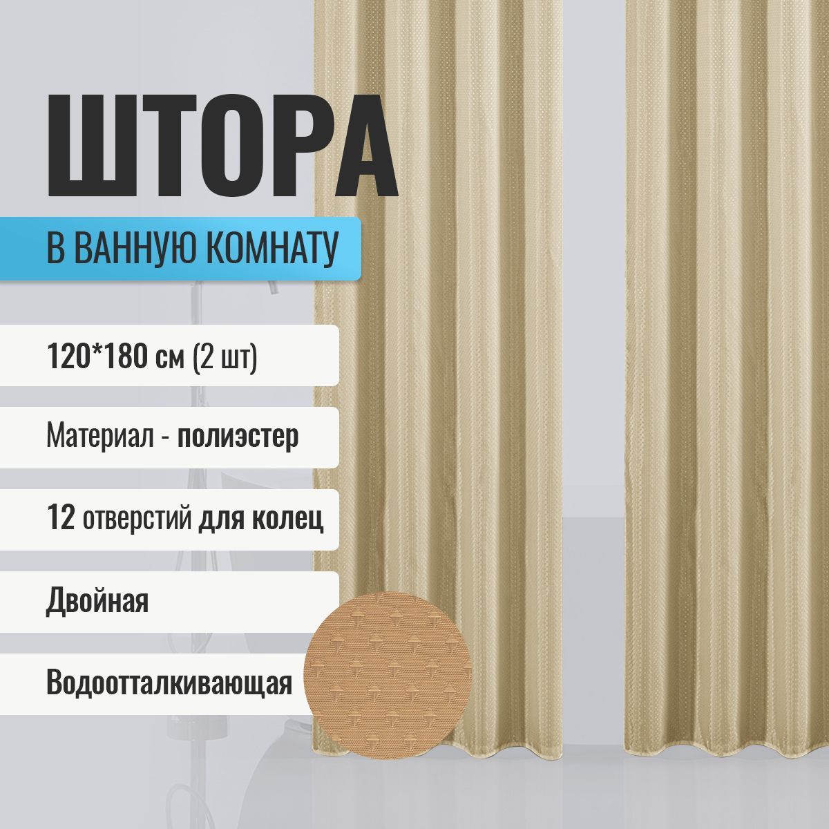 Красиво декорированная однотонная двойная шторка цвета КОФЕ с МОЛОКОМ в ванную и душевую комнаты - текстурная, защищающая пол и оборудование ванной комнаты от брызг воды, изготовлена из полиэстера и обладает выраженными водоотталкивающими свойствами. Занавеска для ванной имеет в верхней части 12 отверстей обработанных на оверлоке. Такие шторки не боятся влаги и не смываются даже очень горячей водой. Водоотталкивающие шторы для ванной, пошитые из ткани плотностью 80 г/м2, не придется дополнительно утяжелять - они расправятся под своим весом и не будут липнуть к телу принимающего душ человека. При заказе данных изделий следует учесть, что яркость и оттенок рисунка на ткани могут несколько отличаться от изображения на экране монитора, а также допустимо отклонение в размерах полотна в пределах 5 см. Ширина шторы 120 см, высота 180 см.в комплекте две штуки. Вес - 0,600 кг, объём - 0,00200 м3