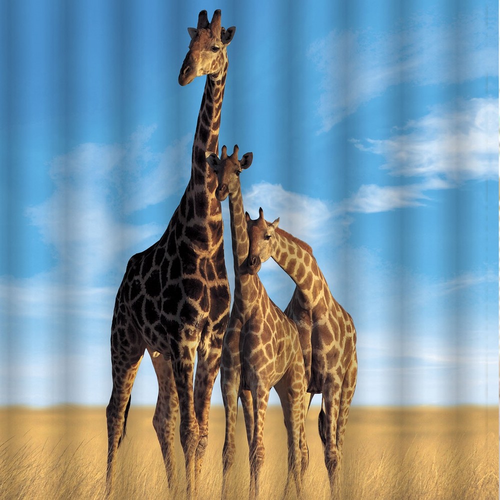 Шторка в ванную комнату, фотопечать, ЖИРАФЫ