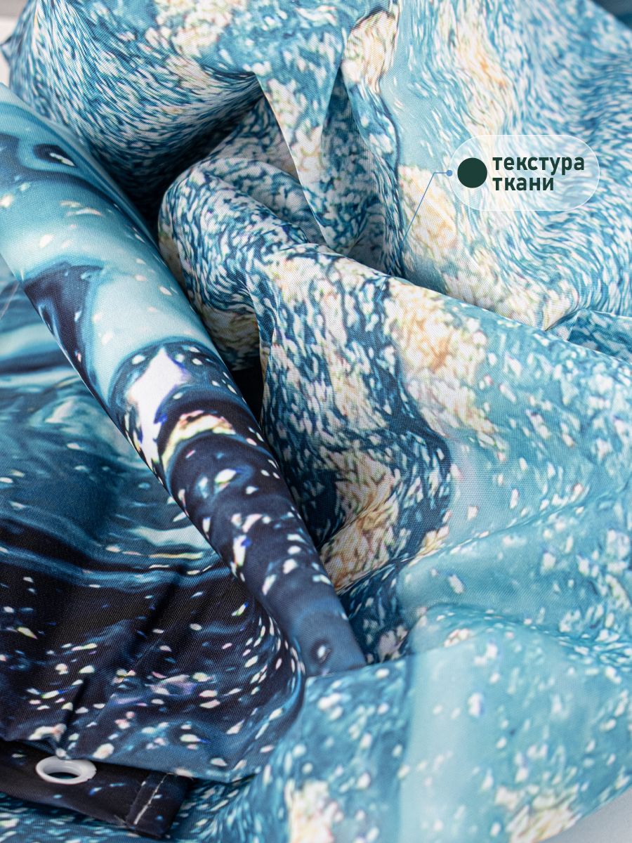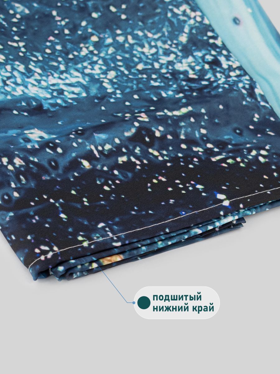 Штора с рисунком СИНИЙ МРАМОР с СЕРЕБРОМ, в ванную комнату, без колец - полиэстэр, 180 х 180 см.