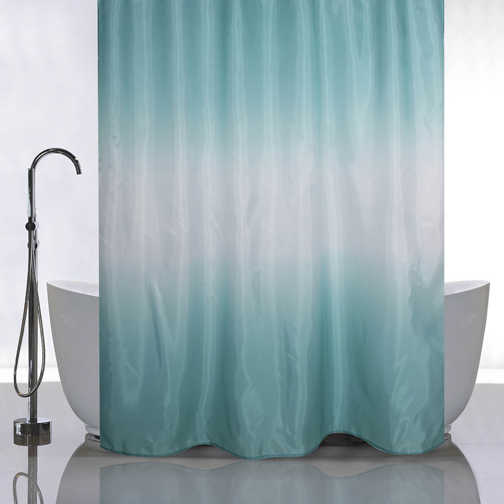 Штора с рисунком, БИРЮЗОВЫЙ, ЦВЕТОВОЙ ПЕРЕХОД, в ванную комнату, без колец, полиэстэр