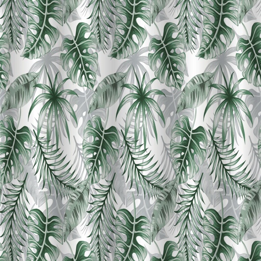 Штора с рисунком, МОНСТЕРА, в ванную комнату, без колец, полиэстэр
