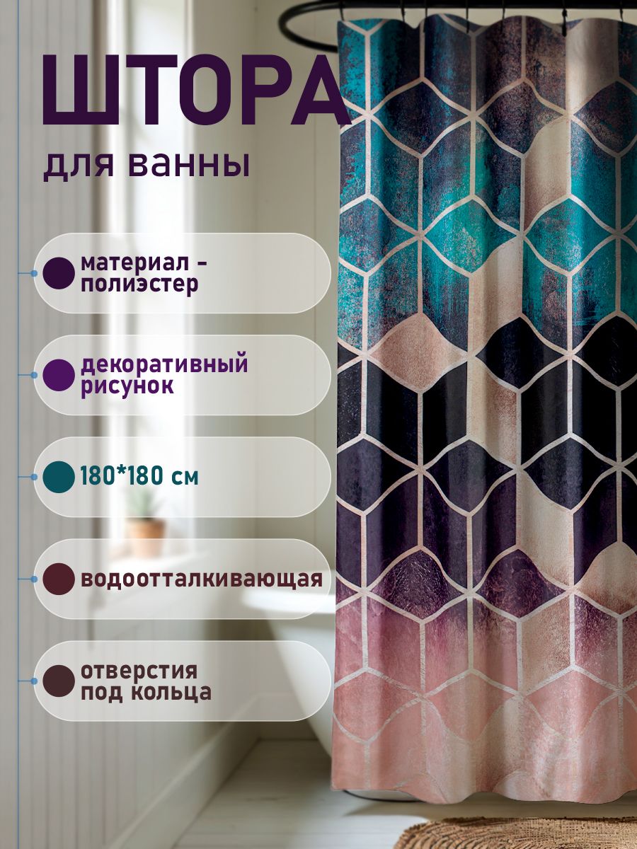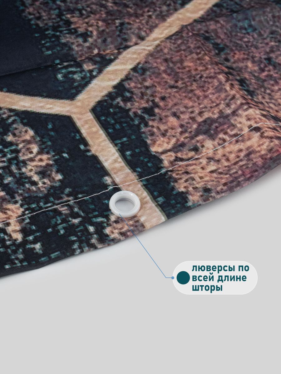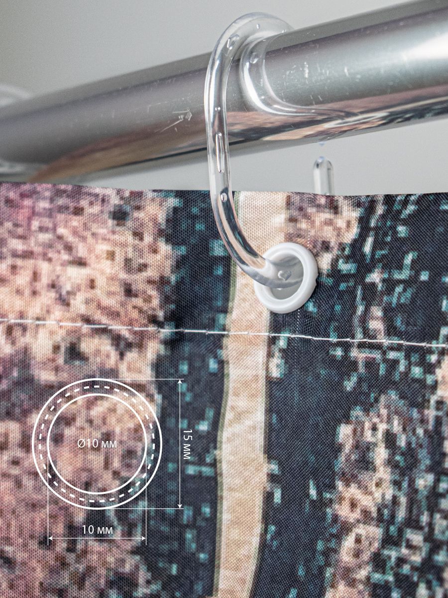 Красиво декорированная шторка в ванную и душевую комнаты с рисунком, защищающая пол и оборудование ванной комнаты от брызг воды, изготовлена из полиэстера и обладает выраженными водоотталкивающими свойствами. Занавеска для ванной имеет в верхней части 12 отверстей обработанных на оверлоке. Декоративный рисунок нанесен на поверхность ткани при помощи фотопечати. Такие принты не боятся влаги и не смываются даже очень горячей водой. Водоотталкивающие шторы для ванной, пошитые из ткани плотностью 80 г/м2, не придется дополнительно утяжелять - они расправятся под своим весом и не будут липнуть к телу принимающего душ человека. При заказе данных изделий следует учесть, что яркость и оттенок рисунка на ткани могут несколько отличаться от изображения на экране монитора, а также допустимо отклонение в размерах полотна в пределах 5 см. Габаритные размеры: ширина 180 см, высота 180 см. Вес - 0,450 кг, объём - 0,00166 м3.