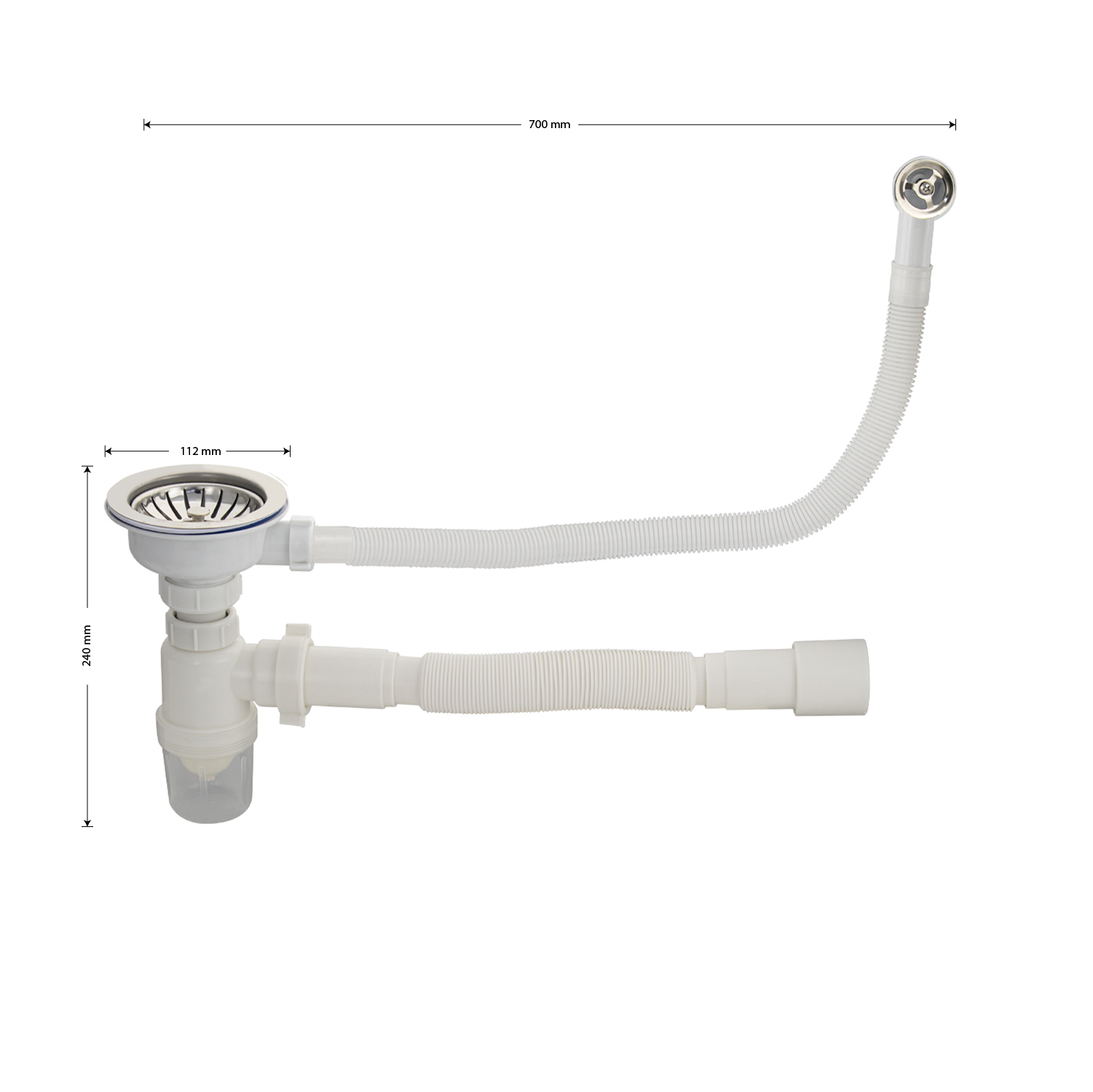 Сифон для кухонных моек из камня и композитных материалов, с диаметром сливного отверстия 90 мм, с переливом. С разборным выпуском и нержавеющей решеткой, из высокопрочного пластика АБС с затвором от проникновения запахов. Форма сифона позволяет поддерживать хорошую пропускную способность слива сточной воды, выполняя свою главную функцию - формирование гидрозатвора для отсечения неприятных запахов из канализации. Конструкция позволяет легко разобрать и почистить сифон в случае засорения, достать случайно упавшие в слив раковины мелкие ценные вещи. Сифон прост в установке. Габаритные размеры: высота 240 мм, верхняя крышка 112 мм. Комплект: сифон. перелив, уплотнения. Вес - 0,67 кг, объём - 0,00726 м3.