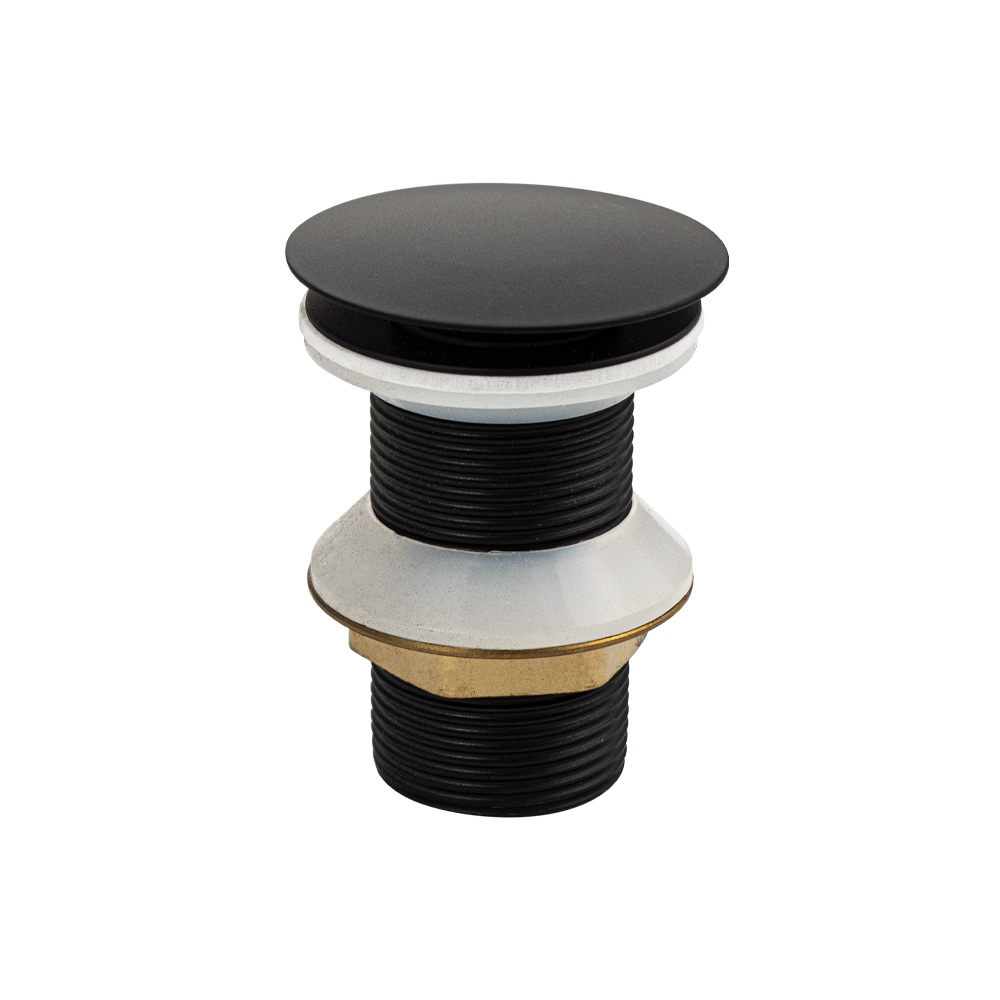 Донный клапан из нержавеющей стали чёрного цвета, без перелива, представляет собой несложный механизм, который устанавливается непосредственно в сливное отверстие раковины и работает как пробка, с системой “Клик-Клак” 1 ¼' и с большой заглушкой клапан надежно закроет сливное отверстие раковины. Нужно использовать для умывальников без перелива. Габариты и параметры: высота 85 мм, диаметр 65 мм. Вес - 0,25 кг, объём - 0,00053 м3