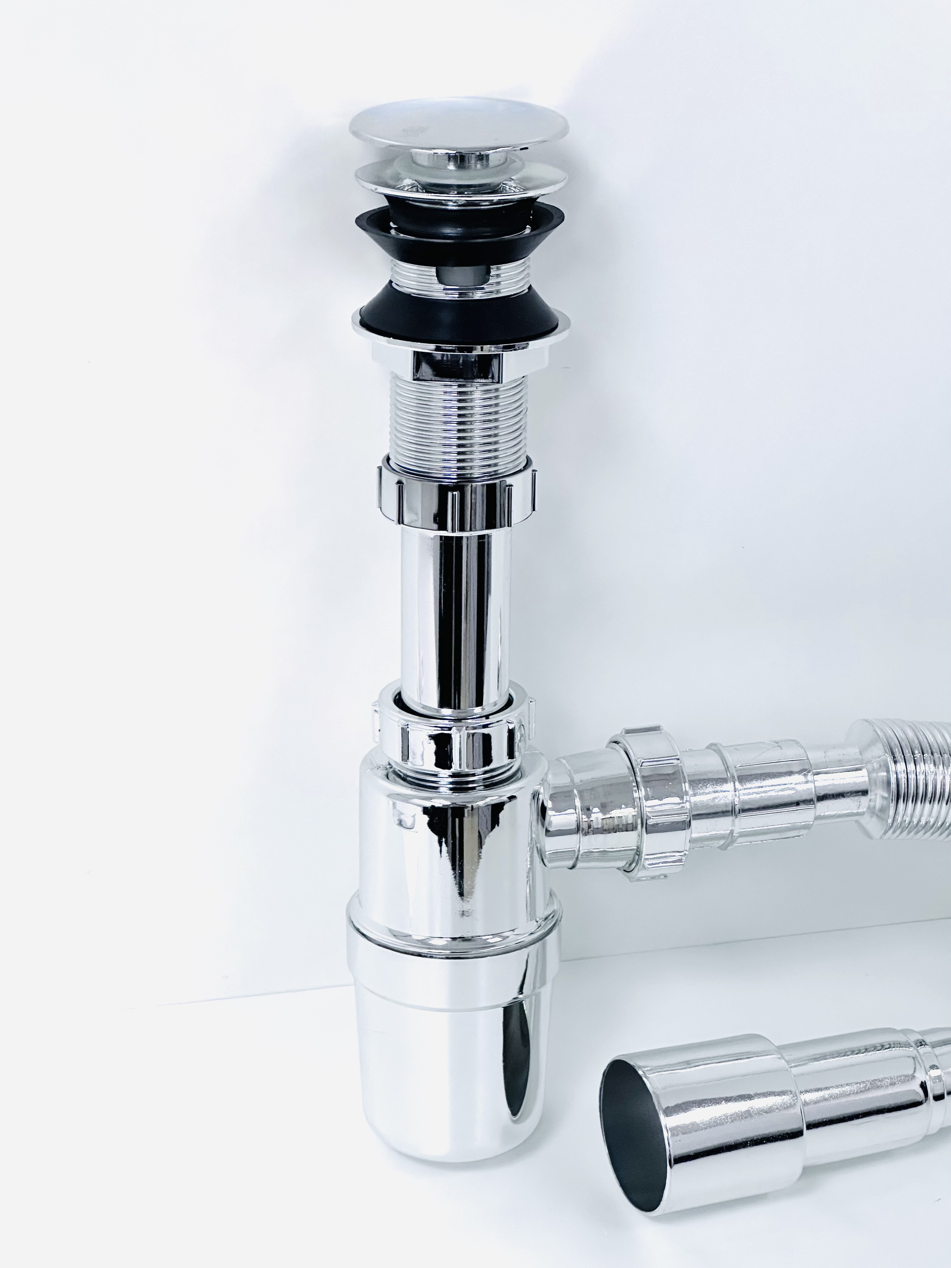 Сифон для раковины из высокопрочного АБС пластика, хромированный, с системой "Клик-Клак" это эстетичное и функциональное устройство для подключения раковины к системе канализации. Бутылочная модель изготовлена из пластика, что обуславливает ее высокую прочность и долговечность. Она устойчива к перепаду температур, поэтому в раковину можно сливать кипяток. Хромированная поверхность сохраняет зеркальный блеск даже после длительной эксплуатации, поверхность не требует особого ухода – достаточно просто протереть. Изделие комплектуется гофрированной трубой с выходом для канализации 50 мм. Габаритные размеры: высота мм, длина , диаметр 32 мм. Вес- кг, объём - м3
