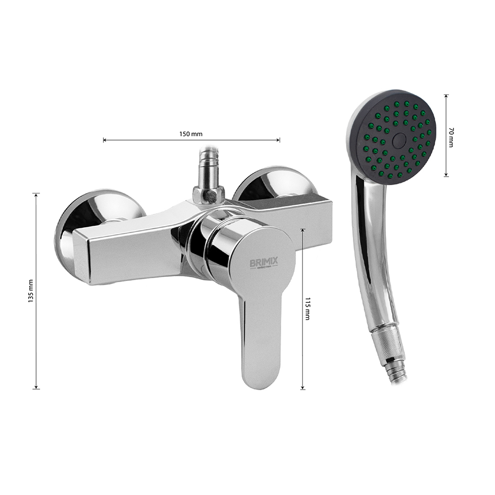 Смеситель из высокопрочного пластика АБС, хромированный в ванную / душевую комнату без излива, литой корпус, шаровый. Картридж d = 40 мм, литая ручка, хромированные чашки и эксцентрики. Габаритные размеры: ширина 150 мм, высота корпуса 135 мм, душевая лейка d = 70 мм, пластиковый шланг 150 см. Вес - 0,900 кг, объём - 0,00531 м3. В комплекте паспорт, корпус, душевая лейка, шланг, кронштейн, комплект крепежа и прокладок.