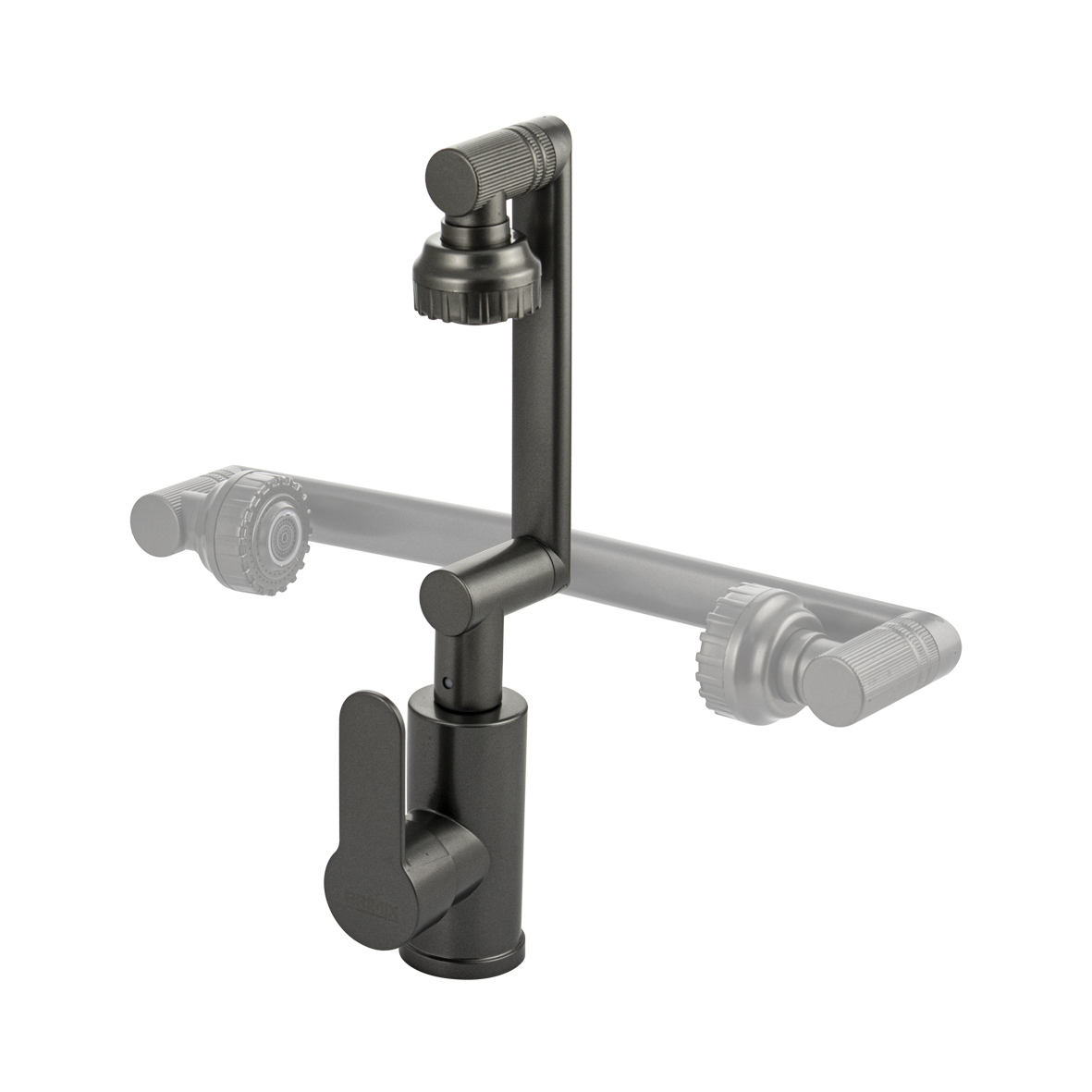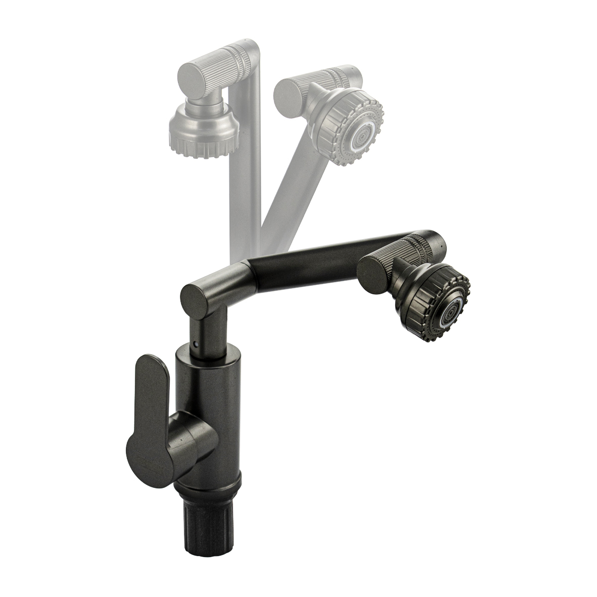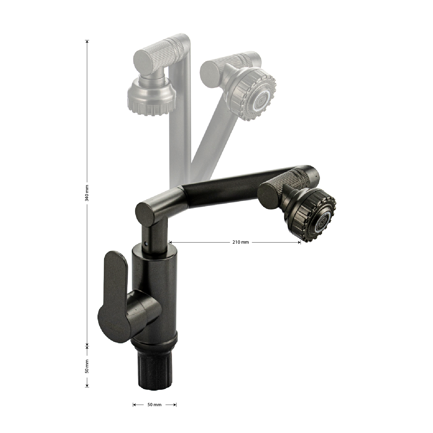 Смеситель для кухонной мойки и раковины, графит, с поворотным изливом и аэратором, шаровый. Из высокопрочного пластика АБС. Крепление резьба - гайка, картридж d = 40 мм. Аэратор для экономии воды. Габаритные размеры: высота 340 мм, длина 210 мм, диаметр посадочного седла 50 мм, длина резьбы 50 мм, длина подводки 500 мм. Вес - 0,84 кг, объём - 0,003 м3. В комплекте паспорт, корпус, подводка 1/2, крепеж, набор прокладок.