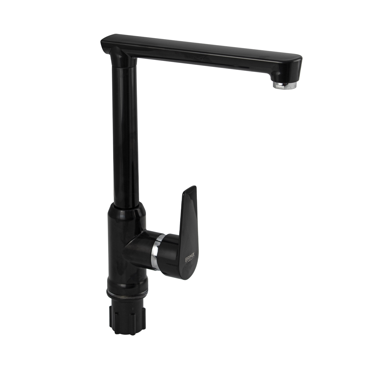 Смеситель для кухонной мойки и раковин, из высокопрочного пластика АБС, ЧЁРНЫЙ, боковой, с высоким Г-образным изливом, шаровый. Крепление резьба - гайка, картридж d = 40 мм, литая хромированная ручка. Хромированный аэратор для экономии воды. Габаритные размеры: высота 290 мм, длина 220 мм, диаметр посадочного седла 45 мм, длина резьбы 45 мм, длина подводки 450 мм. Вес - 0,730 кг, объём - 0,00550 м3. В комплекте паспорт, корпус с изливом, пластиковая подводка с латунными штуцерами 1/2, крепеж, набор прокладок.