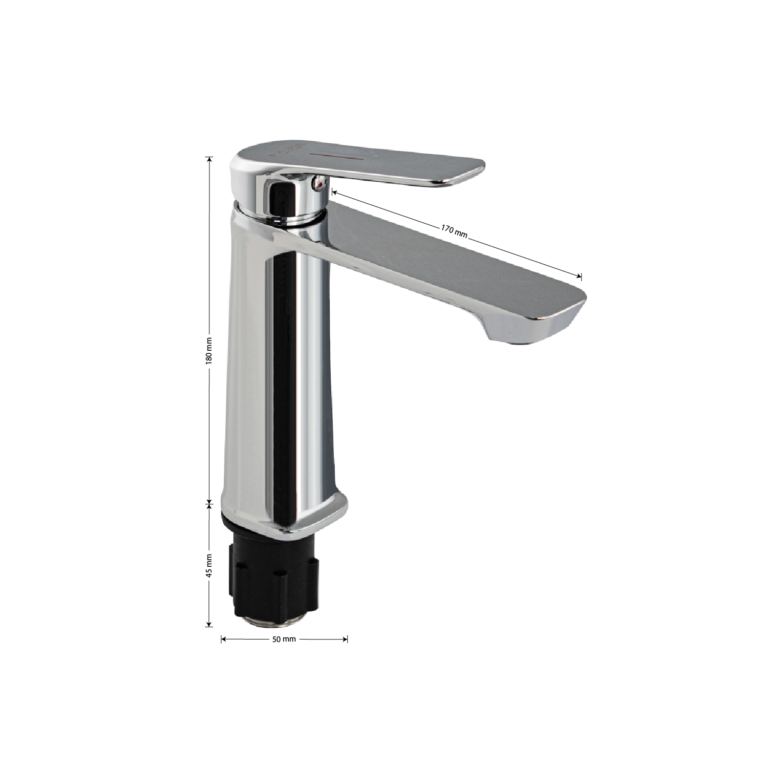 Смеситель для раковины, литой круглый корпус, цвет хром, с прямым плоским изливом, ручка литая прямая, шаровый. Крепление резьба - гайка, картридж d = 35 мм. Аэратор для экономии воды. Такая модель может использоваться на домашней кухне, на даче, в медицинских учреждениях и общественных местах. Габаритные размеры: высота мм, длина мм, посадочное седло мм, длина резьбы мм, длина подводки мм. Вес - 1.4 кг, объём - 0.0038 м3. В комплекте паспорт, корпус, подводка 1/2, крепеж, набор прокладок.