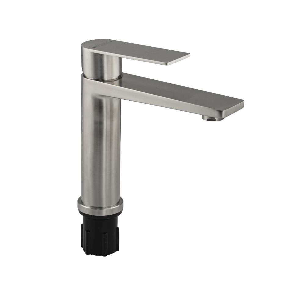 Смеситель для раковины, матовый литой корпус, из нержавеющей стали марки SUS 304, с коротким литым изливом, литая ручка, шаровый. Крепление резьба - гайка, картридж d = мм. Аэратор для экономии воды. Такая модель может использоваться на домашней кухне, на даче, в медицинских учреждениях и общественных местах. Габаритные размеры: высота 190 мм, длина 180 мм, диаметр посадочного седла 50 мм, длина резьбы 50 мм, длина подводки 500 мм. Вес - кг, объём - м3. В комплекте паспорт, корпус, подводка 1/2, крепеж, набор прокладок.