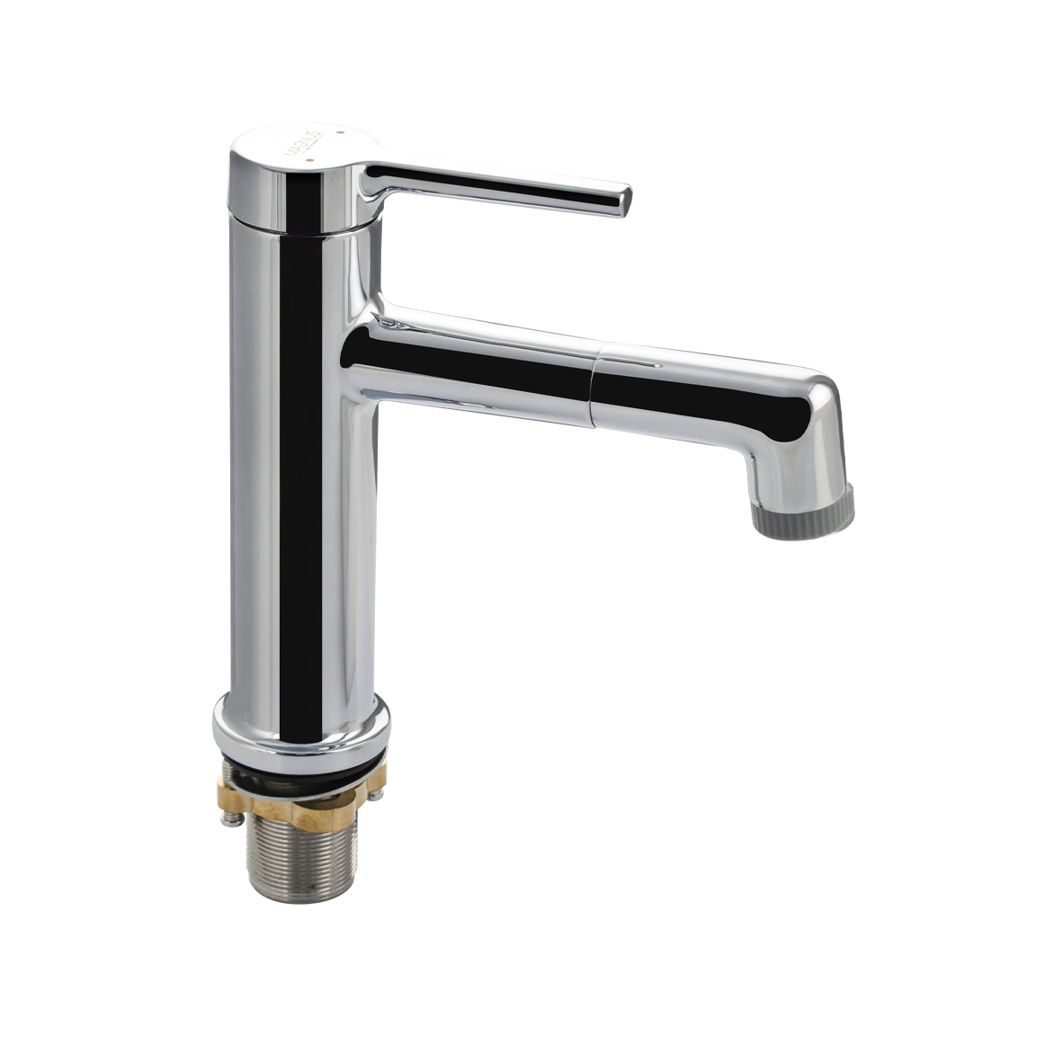 Смеситель для раковин, поворотный излив с эффектом фонтана, литой хромированный корпус, из латуни, шаровый. Крепление резьба - гайка, картридж d = 35 мм, ручка литая. Аэратор для экономии воды. Такая модель может использоваться на домашней кухне, на даче, в медицинских учреждениях и общественных местах. Габаритные размеры: высота 180 мм, длина 180 мм, диаметр посадочного седла 50 мм, длина резьбы 45 мм, длина подводки 600 мм. Вес - 1.63 кг, объём - 0,005 м3. В комплекте паспорт, корпус с изливом, подводка 1/2, крепеж, набор прокладок.