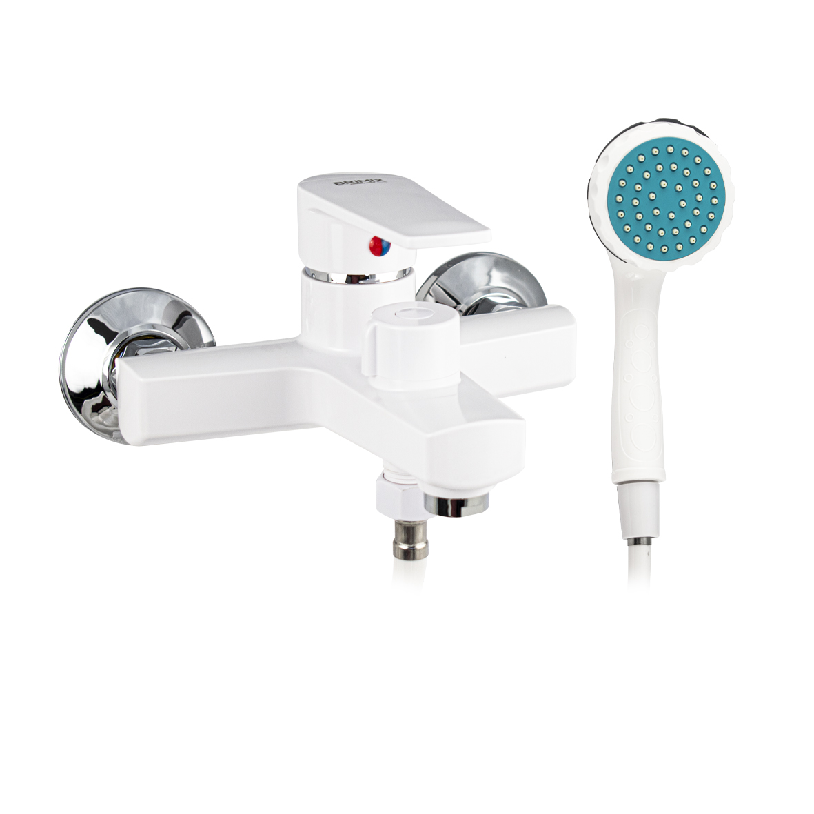 Смеситель из высокопрочного пластика АБС, БЕЛЫЙ в ванную / душевую комнату с коротким изливом, литой корпус, шаровый, с дивертором м/к на корпусе. Картридж d = 40 мм, литая ручка, хромированный аэратор для экономии воды, хромированные чашки и эксцентрики. Габаритные размеры: ширина 150 мм, высота корпуса 100 мм, длина излива 90 мм, душевая лейка d = 80 мм, шланг 150 см. Вес - 1,200 кг, объём - 0,00500 м3. В комплекте паспорт, корпус с изливом, дивертор, душевая лейка, шланг, кронштейн, комплект крепежа и прокладок.