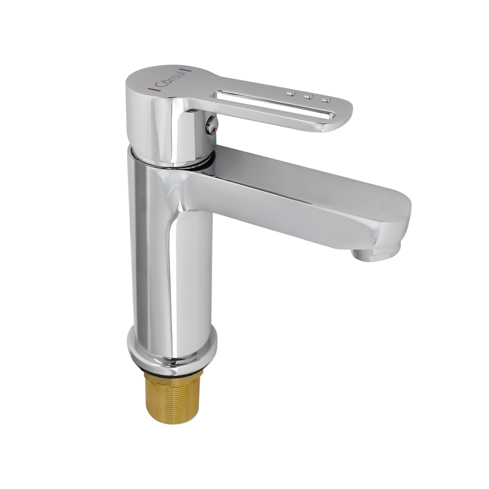 Смеситель для раковины, хромированный, с коротким изливом, литой корпус, ручка с прорезью, шаровый. Материал изготовления — ЦАМ (цинк-алюминий-медь) + нержавеющая сталь. Крепление резьба - гайка, картридж d = 35 мм. Аэратор для экономии воды. Габаритные размеры: высота 155 мм, длина 155 мм, длина излива 115 мм, диаметр посадочного седла 50 мм, длина резьбы 50 мм, длина подводки 400 мм. Вес - 1,000 кг, объём - 0,00295 м3. В комплекте паспорт, корпус, подводка 1/2, крепеж, набор прокладок. Габаритные размеры коробки: ширина 200 мм, высота 80 мм, глубина 150 мм.