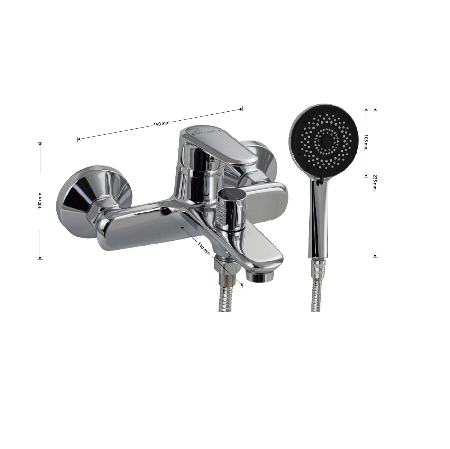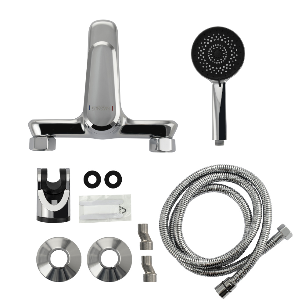 Смеситель хромированный в ванную / душевую комнату с коротким изливом, литой корпус, шаровый, поворотный дивертор на корпусе. Материал изготовления — ЦАМ (цинк-алюминий-медь) + нержавеющая сталь. Картридж d = 35 мм, литая ручка, аэратор для экономии воды, чашки и эксцентрики. Габаритные размеры: ширина 150 мм, высота корпуса 100 мм, длина излива 140 мм, диаметр душевой лейки 105 мм, шланг 150 см. Вес - 1.64 кг, объём - 0.00557 м3. В комплекте паспорт, корпус с изливом, дивертор, душевая лейка, шланг, кронштейн, комплект крепежа и прокладок.