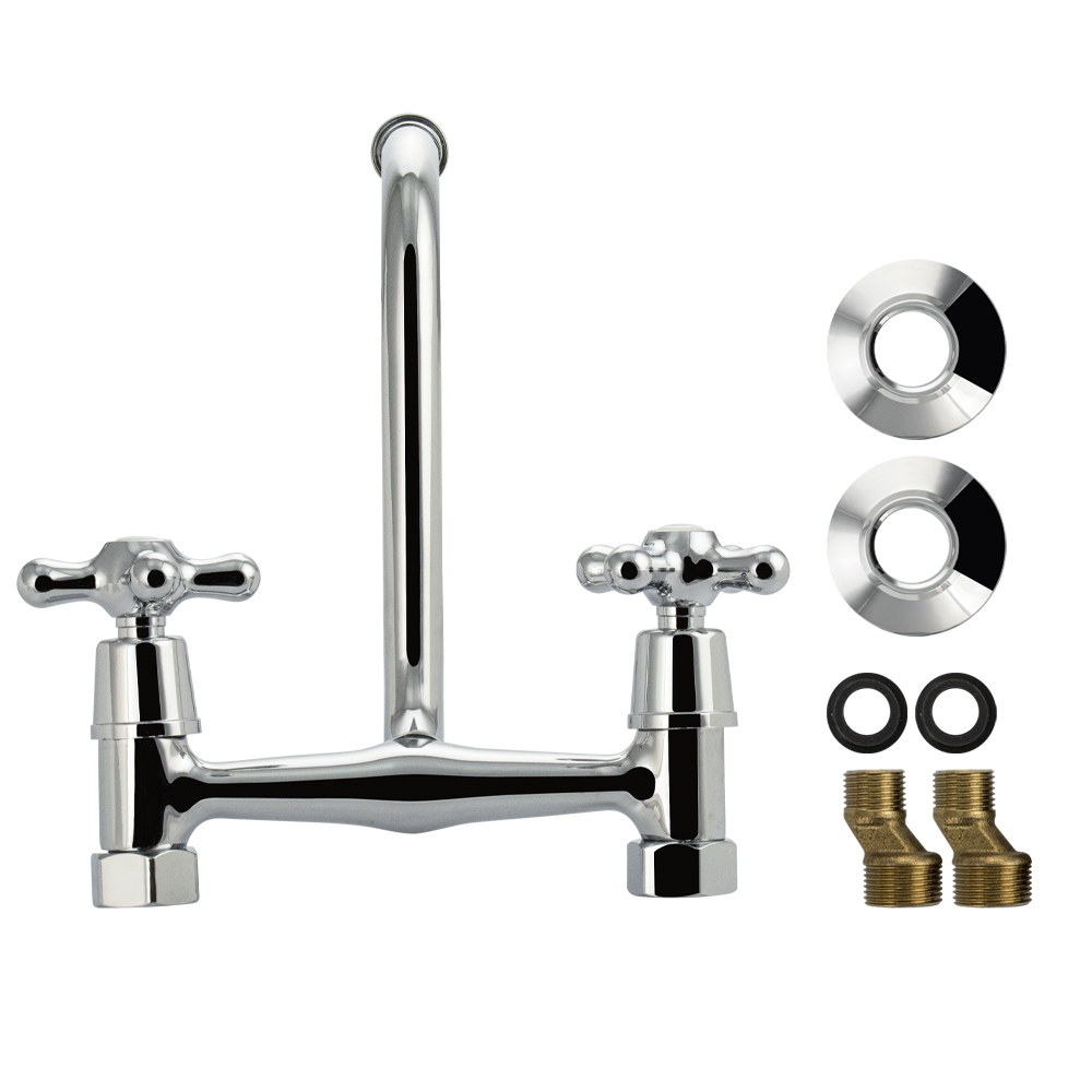 Смеситель от стены, для кухонной мойки и раковин, с круглым изливом, хромированный, с аэратором для экономии воды. Кранбуксы металлокерамика 1/2, ручки крест поворот на 90˚. Габаритные размеры: ширина 150 мм, высота 200 мм, длина излива 200 мм, диаметр чашки 60 мм. Вес - 0,700 кг, объём - 0,00380 м3. В комплекте корпус с изливом, паспорт, крепёж.