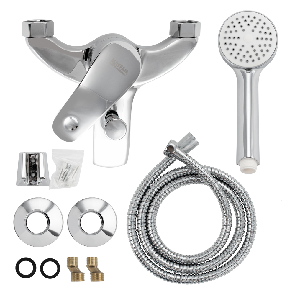 Смеситель хромированный в ванную / душевую комнату с коротким, изогнутым изливом, изогнутый дутый корпус, шаровый, с кнопочным дивертором на корпусе. Материал изготовления — ЦАМ (цинк-алюминий-медь) + нержавеющая сталь. Картридж d = 40 мм, ручка литая, аэратор для экономии воды, чашки и эксцентрики. Габаритные размеры: ширина 150 мм, высота корпуса 110 мм, длина излива 105 мм, трёхрежимная душевая лейка d = 78 мм, шланг 150 см. Вес - 1,400 кг, объём - 0,00432 м3. В комплекте паспорт, корпус с изливом, дивертор, душевая лейка, шланг, кронштейн, комплект крепежа и прокладок.