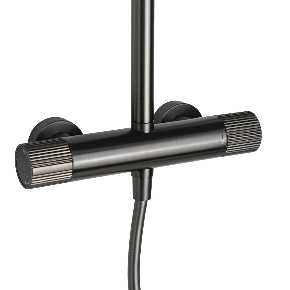 Смеситель термостатический + стойка душевая "тропический душ", с двумя лейками, из нержавеющей стали марки SUS 304, цвет ГРАФИТ.