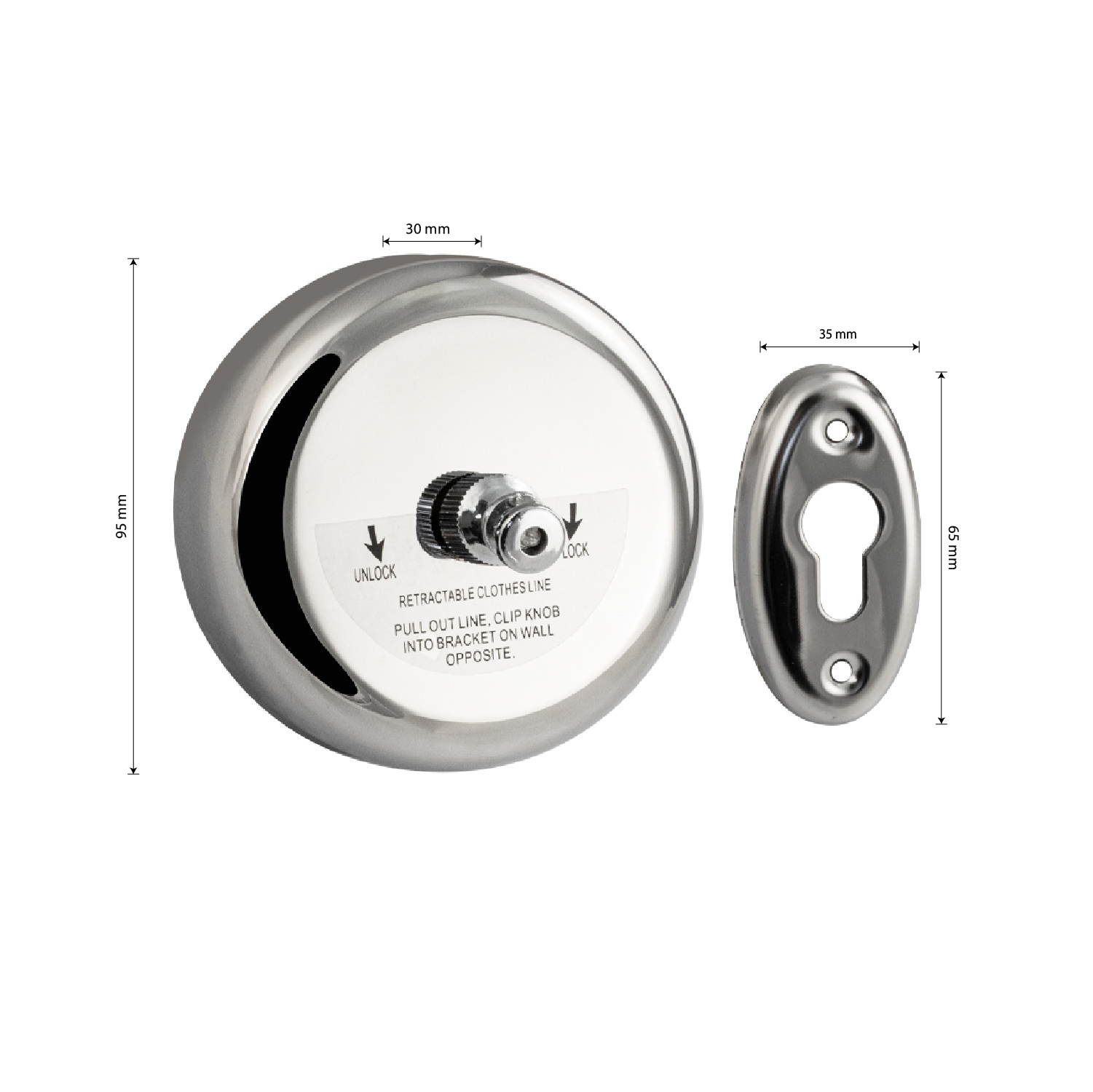 Компактная сушилка для белья позволяет быстро и с комфортом высушивать мокрое белье и полотенца. Она выполнена из нержавеющей стали с хромовым покрытием, что обуславливает надежность и долговечность ее эксплуатации. Веревка свободно вытягивается до 3000 мм и крепится между двумя стенами. Для лучшего натяжения при необходимости ее можно укоротить. Конструкция выдерживает нагрузку до 5 кг. Габаритные размеры: диаметр 95 мм, глубина 30 мм. Вес - 0,280 кг, объём - 0,00060 м3. Габаритные размеры коробки: ширина 100 мм, высота 100 мм, глубина 60 мм.
