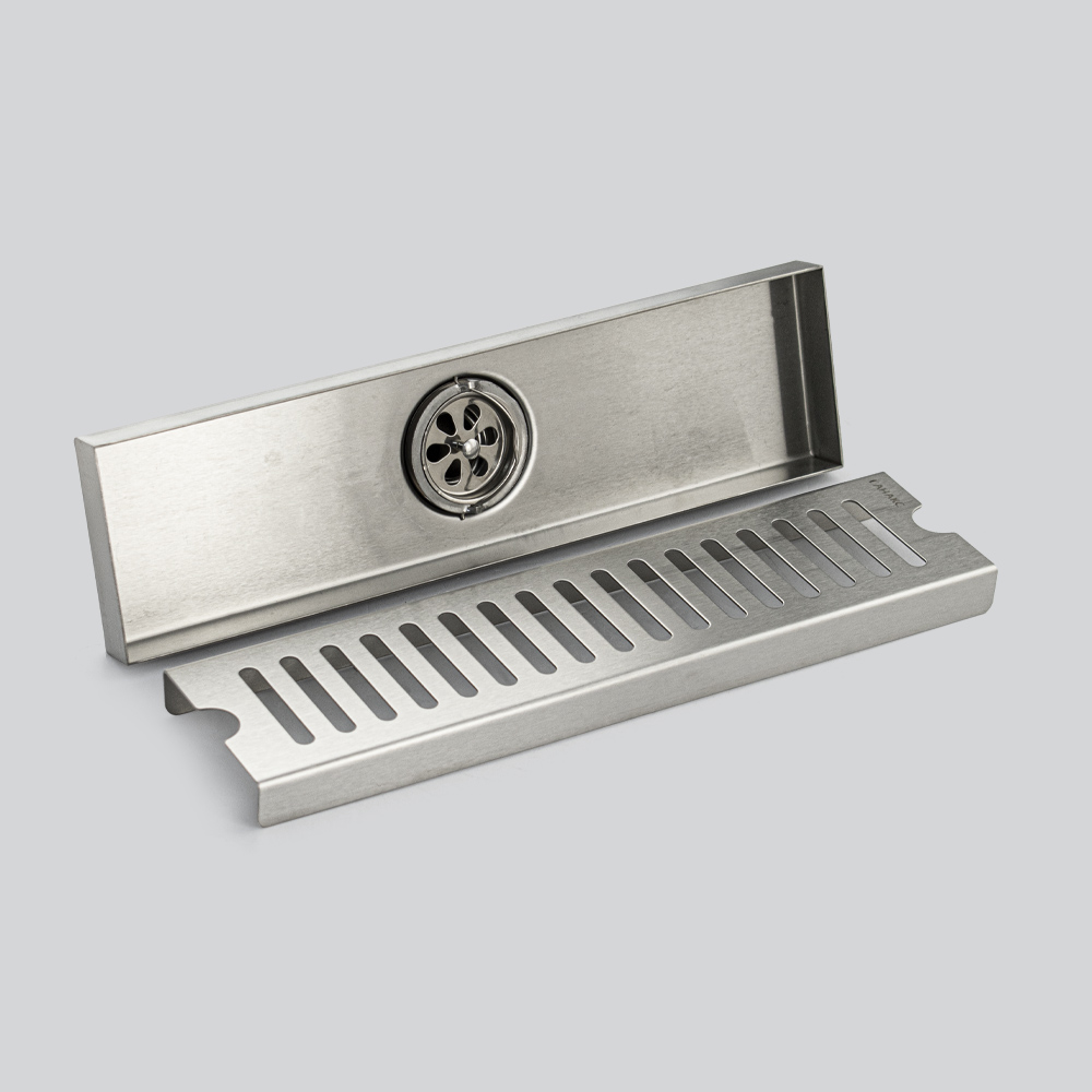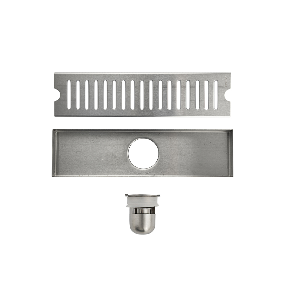 Душевой сливной трап из нержавеющей стали, матовый, линейный, вертикальный с гидрозатвором – это специальный элемент сантехнических коммуникаций, предназначенный для отвода воды в систему канализации. Как правило, душевые трапы устанавливаются непосредственно в пол. Благодаря небольшим габаритам и высоте душевые трапы идеальны для установки в душевых зонах. Это важно для организации пространства, где нет возможности установить классическую ванну: в малогабаритных квартирах, студиях, совмещенных санузлах и т.п. Габаритные размеры: высота 65 мм, ширина 80 мм, длина 300 мм, выход в канализацию 50 мм. Вес - 0,776 кг, объём - 0,00216 м3.