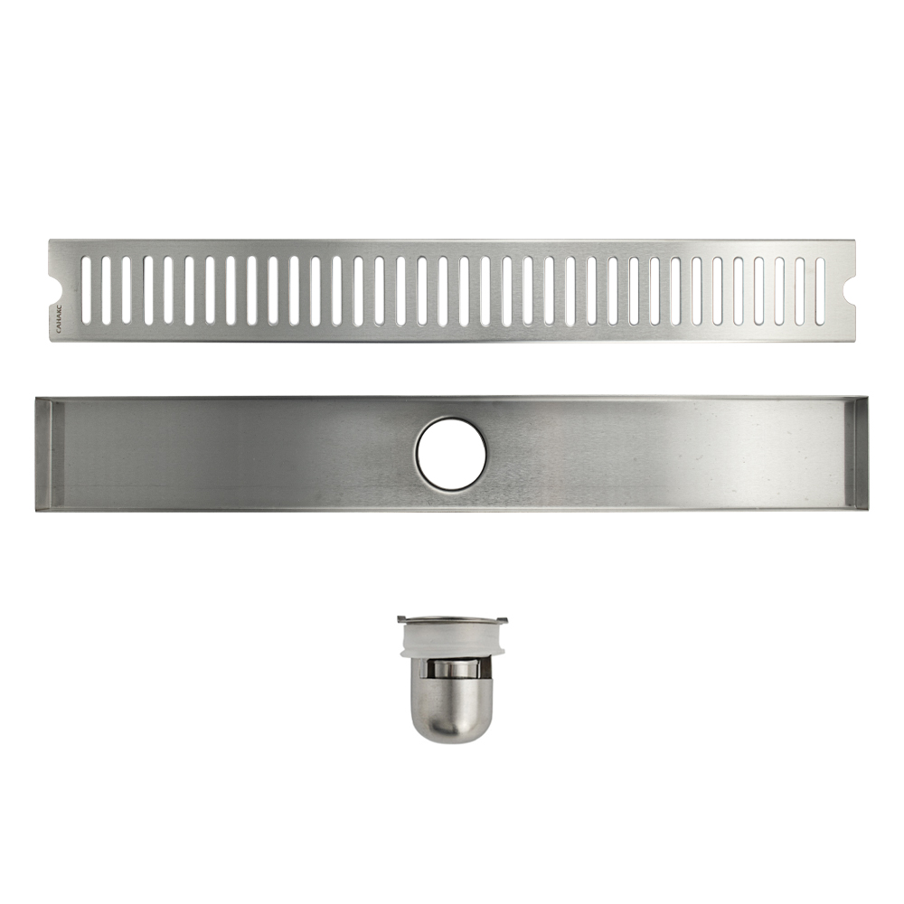 Душевой сливной трап из нержавеющей стали, матовый, линейный, вертикальный с гидрозатвором – это специальный элемент сантехнических коммуникаций, предназначенный для отвода воды в систему канализации. Как правило, душевые трапы устанавливаются непосредственно в пол. Благодаря небольшим габаритам и высоте душевые трапы идеальны для установки в душевых зонах. Это важно для организации пространства, где нет возможности установить классическую ванну: в малогабаритных квартирах, студиях, совмещенных санузлах и т.п. Габаритные размеры: высота 65 мм, ширина 80 мм, длина 600 мм, выход в канализацию 50 мм. Вес - 1,428 кг, объём - 0,0042 м3.