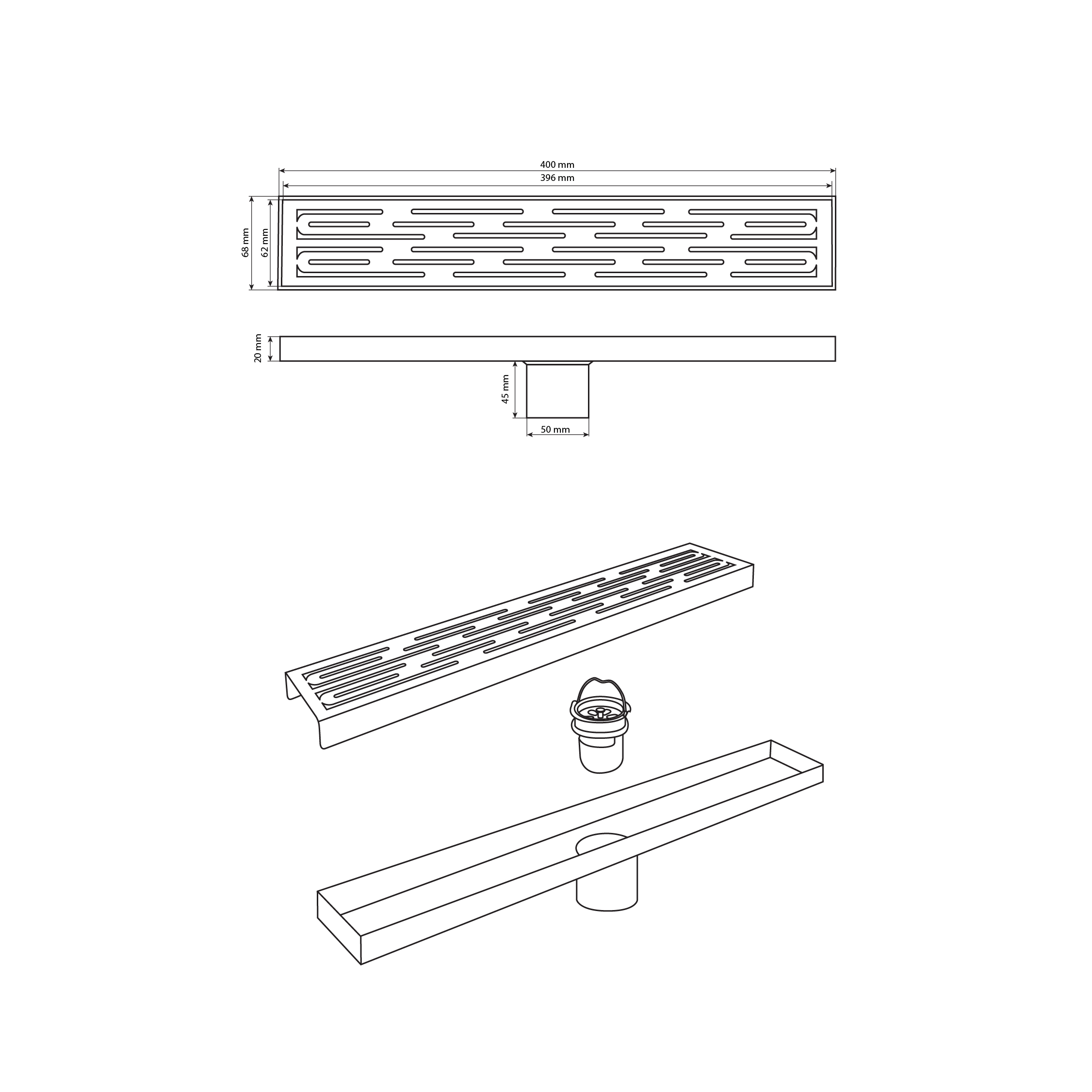 Душевой сливной трап из нержавеющей стали, матовый, линейный, вертикальный с гидрозатвором – это специальный элемент сантехнических коммуникаций, предназначенный для отвода воды в систему канализации. Как правило, душевые трапы устанавливаются непосредственно в пол. Благодаря небольшим габаритам и высоте душевые трапы идеальны для установки в душевых зонах. Это важно для организации пространства, где нет возможности установить классическую ванну: в малогабаритных квартирах, студиях, совмещенных санузлах и т.п. Габаритные размеры: высота 70 мм, ширина 68 мм, длина 400 мм, выход в канализацию 50 мм. Вес - 1,000 кг, объём - 0,00300 м3.