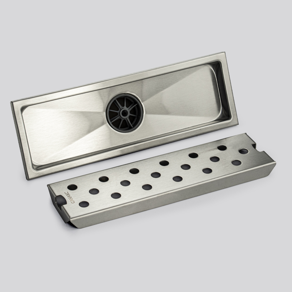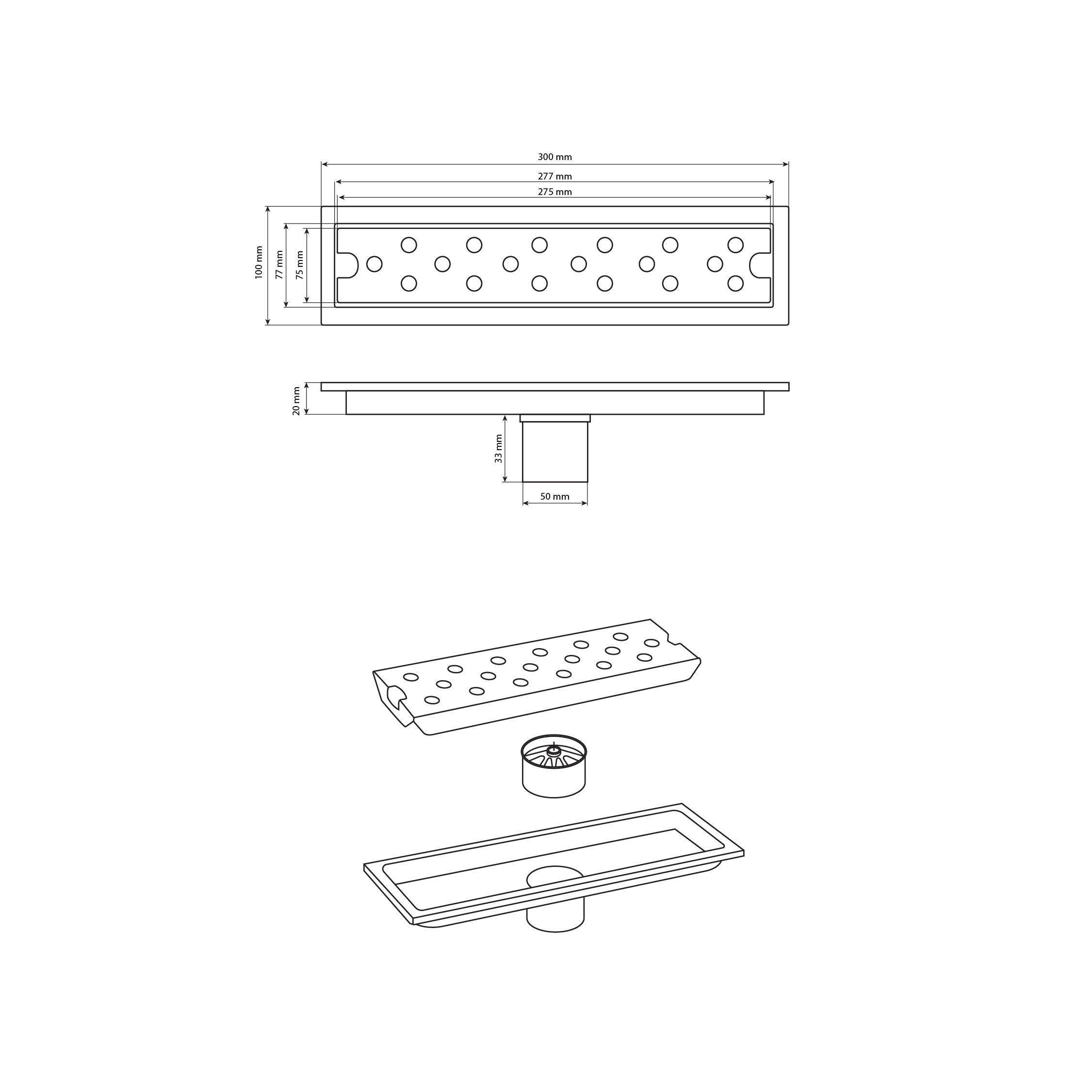 Душевой сливной трап из нержавеющей стали, линейный, вертикальный с сухим мембранным затвором – это специальный элемент сантехнических коммуникаций, предназначенный для отвода воды в систему канализации. Как правило, душевые трапы устанавливаются непосредственно в пол. Благодаря небольшим габаритам и высоте душевые трапы идеальны для установки в душевых зонах. Это важно для организации пространства, где нет возможности установить классическую ванну: в малогабаритных квартирах, студиях, совмещенных санузлах и т.п. Габаритные размеры: высота 55 мм, ширина 100 мм, длина 300 мм, выход в канализацию 50 мм. Вес - 0,700 кг, объём - 0,00212 м3.