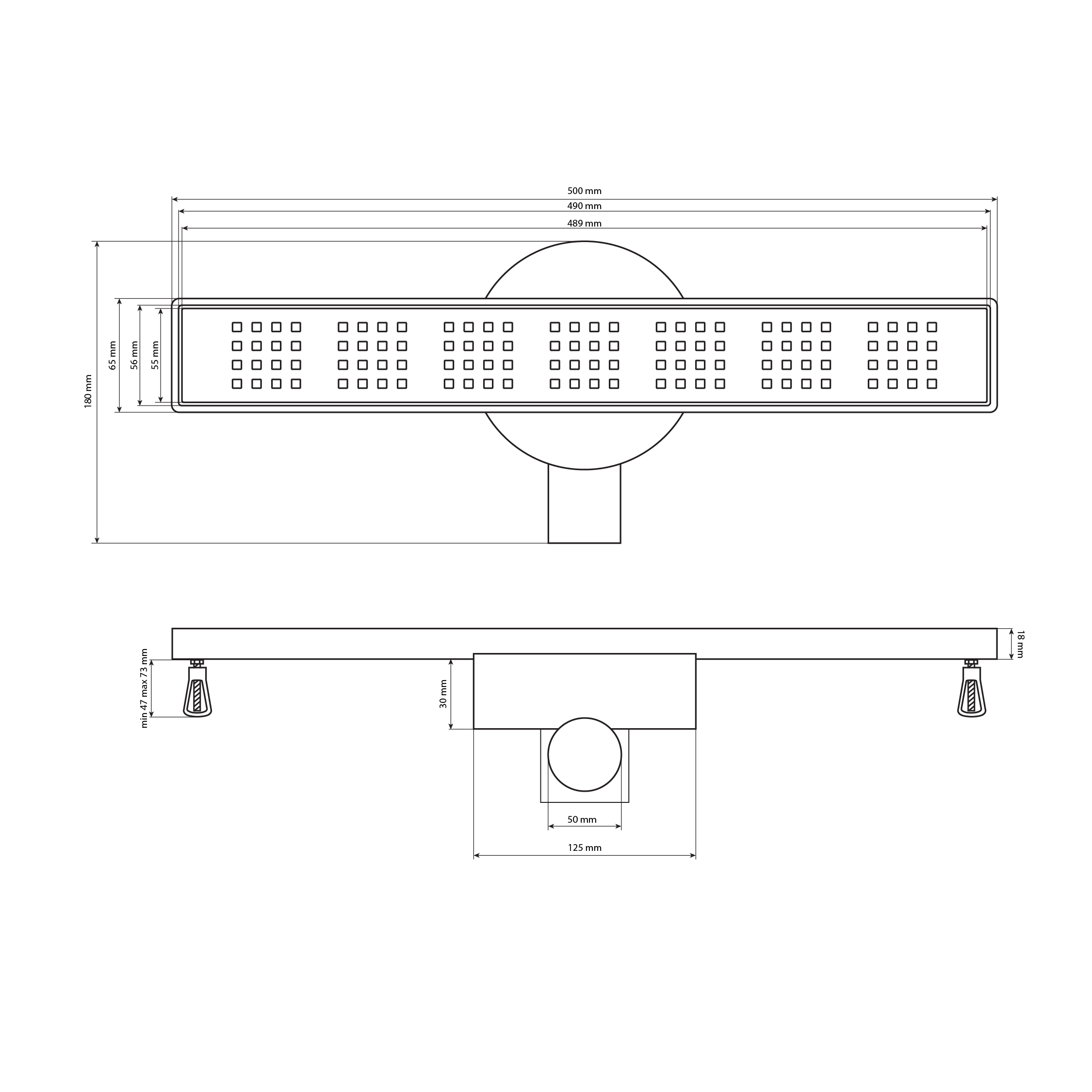 Душевой сливной трап из нержавеющей стали и пластика АБС, линейный, горизонтальный с гидрозатвором и с регулируемыми по высоте винтами, это специальный элемент сантехнических коммуникаций, предназначенный для отвода воды в систему канализации. Как правило, душевые трапы устанавливаются непосредственно в пол. Благодаря небольшим габаритам и высоте душевые трапы идеальны для установки в душевых зонах. Это важно для организации пространства, где нет возможности установить классическую ванну: в малогабаритных квартирах, студиях, совмещенных санузлах и т.п. Габаритные размеры: высота 75 мм, ширина 65 мм, длина 500 мм, выход в канализацию 50 мм. В комлекте вращающийся слив на 360°. Вес - 0,75 кг, объём - 0,00670 м3.