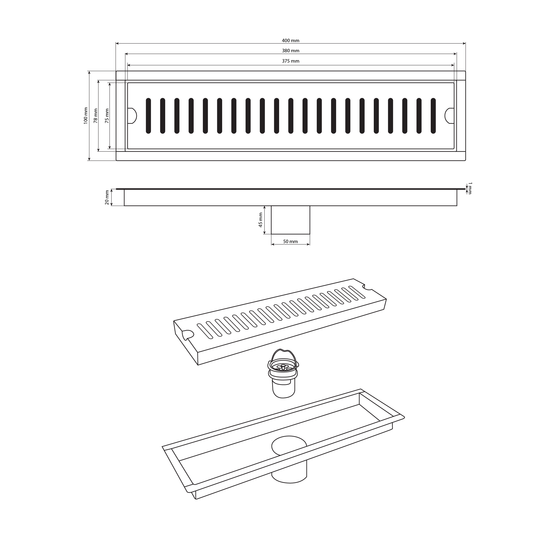 Душевой сливной трап из нержавеющей стали, линейный, вертикальный с гидрозатвором – это специальный элемент сантехнических коммуникаций, предназначенный для отвода воды в систему канализации. Как правило, душевые трапы устанавливаются непосредственно в пол. Благодаря небольшим габаритам и высоте душевые трапы идеальны для установки в душевых зонах. Это важно для организации пространства, где нет возможности установить классическую ванну: в малогабаритных квартирах, студиях, совмещенных санузлах и т.п. Габаритные размеры: высота 70 мм, ширина 100 мм, длина 400 мм, выход в канализацию 50 мм. Вес - 0,900 кг, объём - 0,00400 м3.
