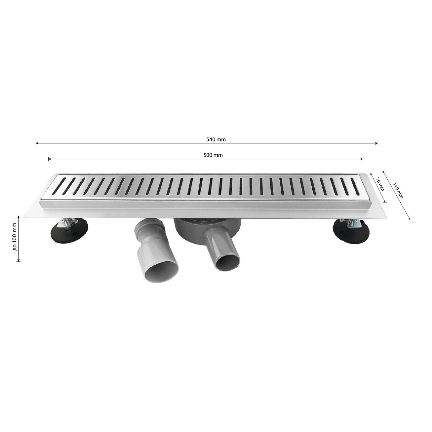 Душевой сливной трап из нержавеющей стали, линейный, горизонтальный с гидрозатвором, с регулируемыми ножками и бортиком под плитку с четырёх сторон – это специальный элемент сантехнических коммуникаций, предназначенный для отвода воды в систему канализации. Как правило, душевые трапы устанавливаются непосредственно в пол. Благодаря небольшим габаритам и высоте душевые трапы идеальны для установки в душевых зонах. Это важно для организации пространства, где нет возможности установить классическую ванну: в малогабаритных квартирах, студиях, совмещенных санузлах и т.п. Габаритные размеры: высота до 100 мм, ширина 70 мм, длина 500 мм, ширина бортика 20 мм, выход в канализацию 50 мм. В комлекте идут регулируемые ножки высотой до 10 мм от пола, вращающийся слив на 360°. Вес - 2,050 кг, объём - 0,00850 м3.