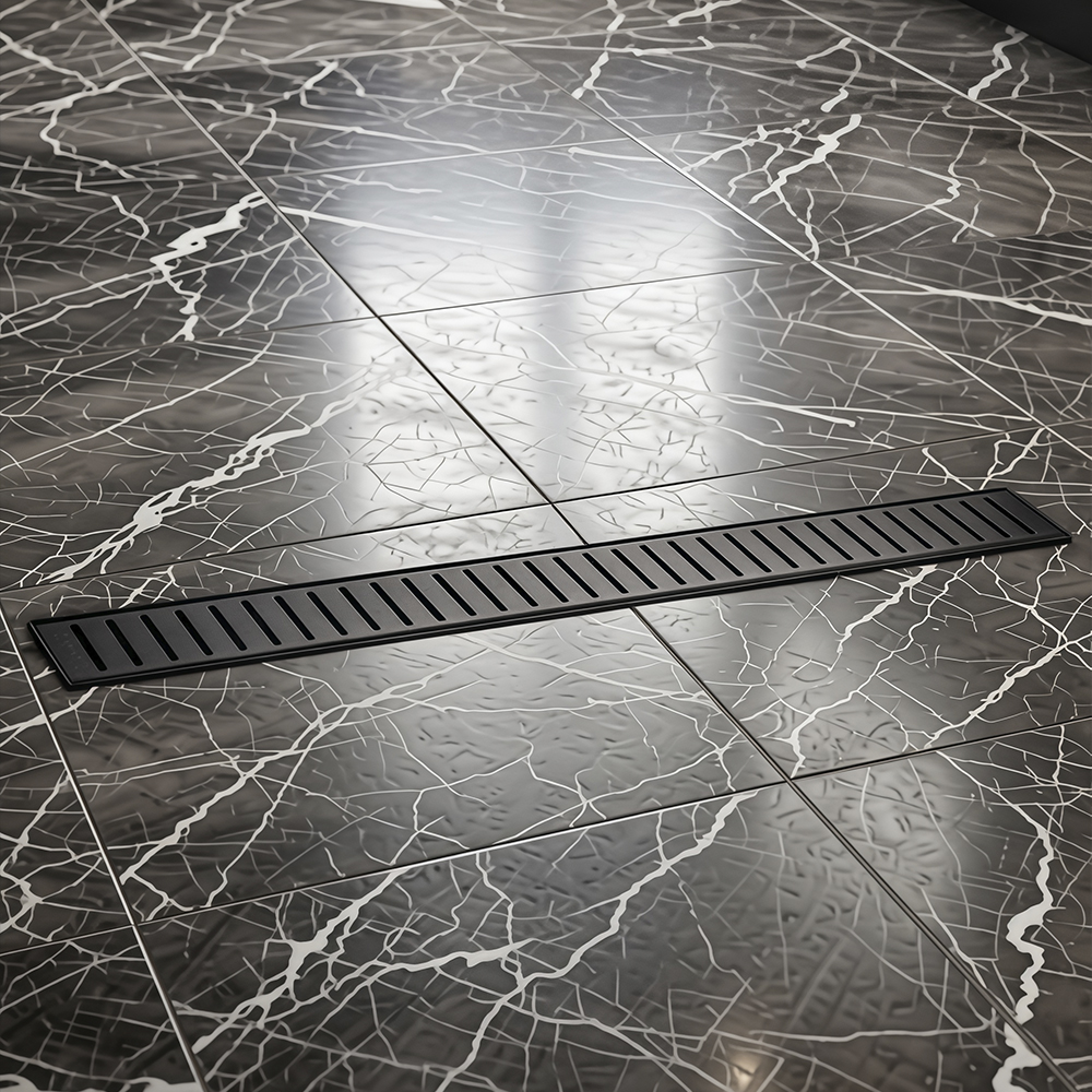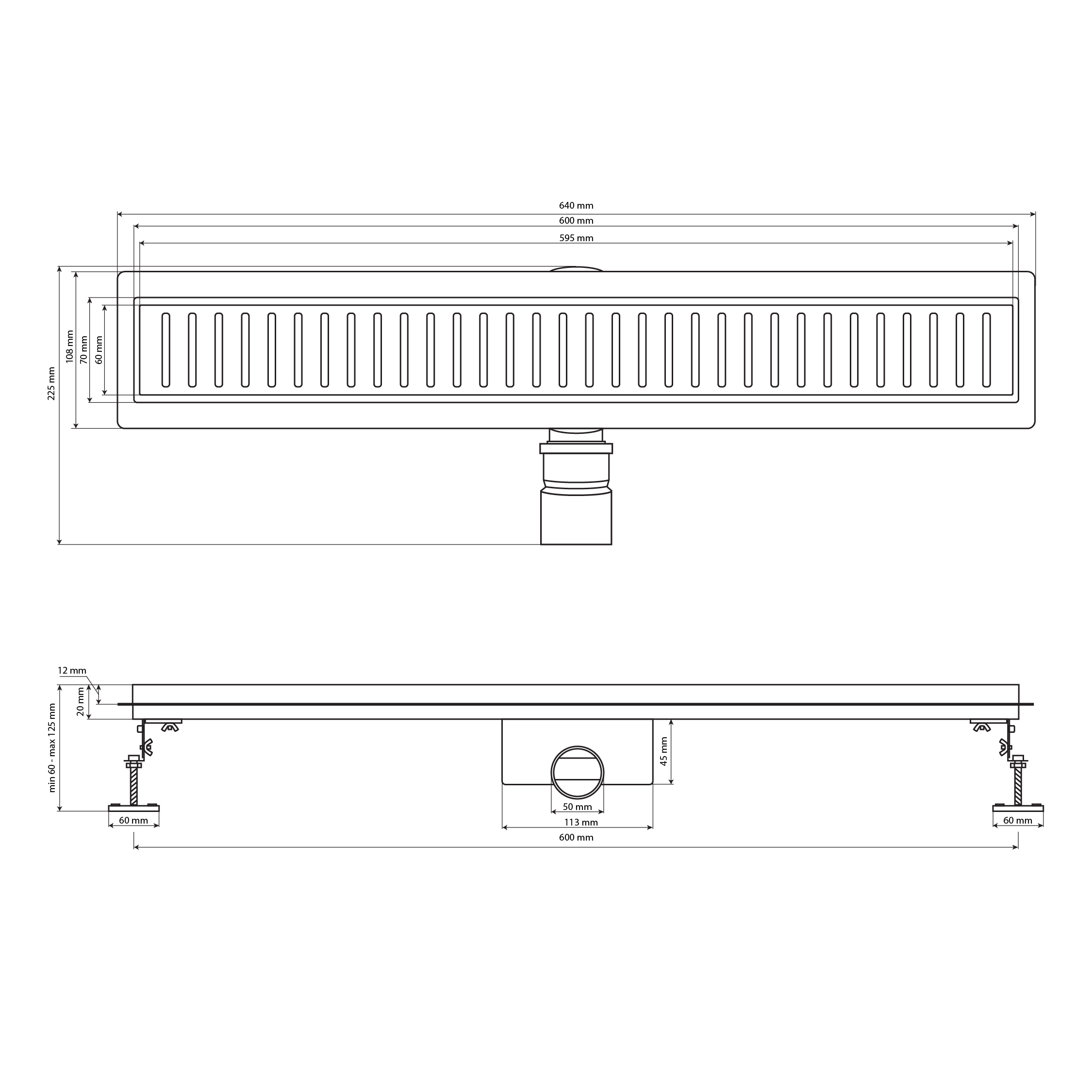 Душевой сливной трап из нержавеющей стали, чёрного цвета, линейный, горизонтальный с сухим затвором, с регулируемыми ножками и бортиком под плитку с четырёх сторон – это специальный элемент сантехнических коммуникаций, предназначенный для отвода воды в систему канализации. Как правило, душевые трапы устанавливаются непосредственно в пол. Благодаря небольшим габаритам и высоте душевые трапы идеальны для установки в душевых зонах. Это важно для организации пространства, где нет возможности установить классическую ванну: в малогабаритных квартирах, студиях, совмещенных санузлах и т.п. Габаритные размеры: высота до 100 мм, ширина 70 мм, длина 600 мм, ширина бортика 20 мм, выход в канализацию 50 мм. В комлекте идут регулируемые ножки высотой до 10 мм от пола, вращающийся слив на 360°. Вес - 2,50 кг, объём - 0,01082 м3.
