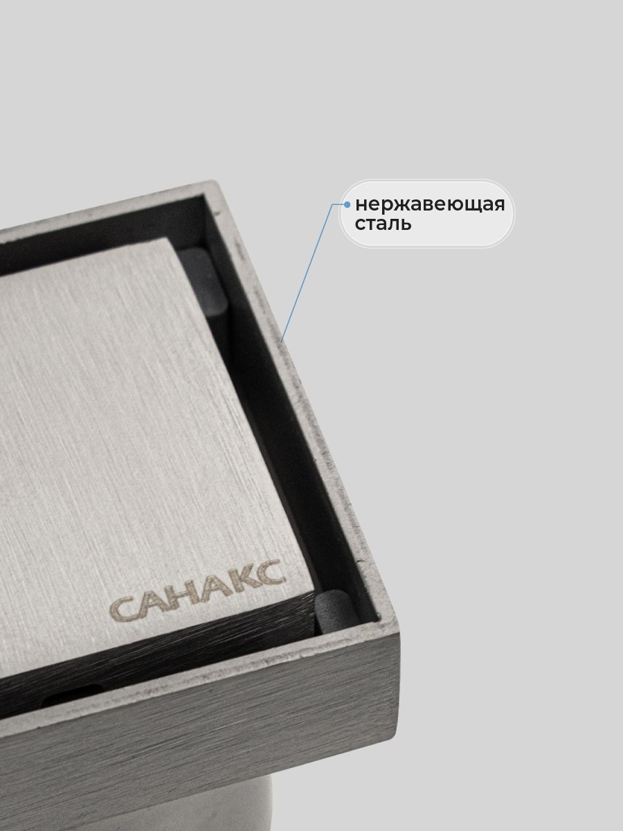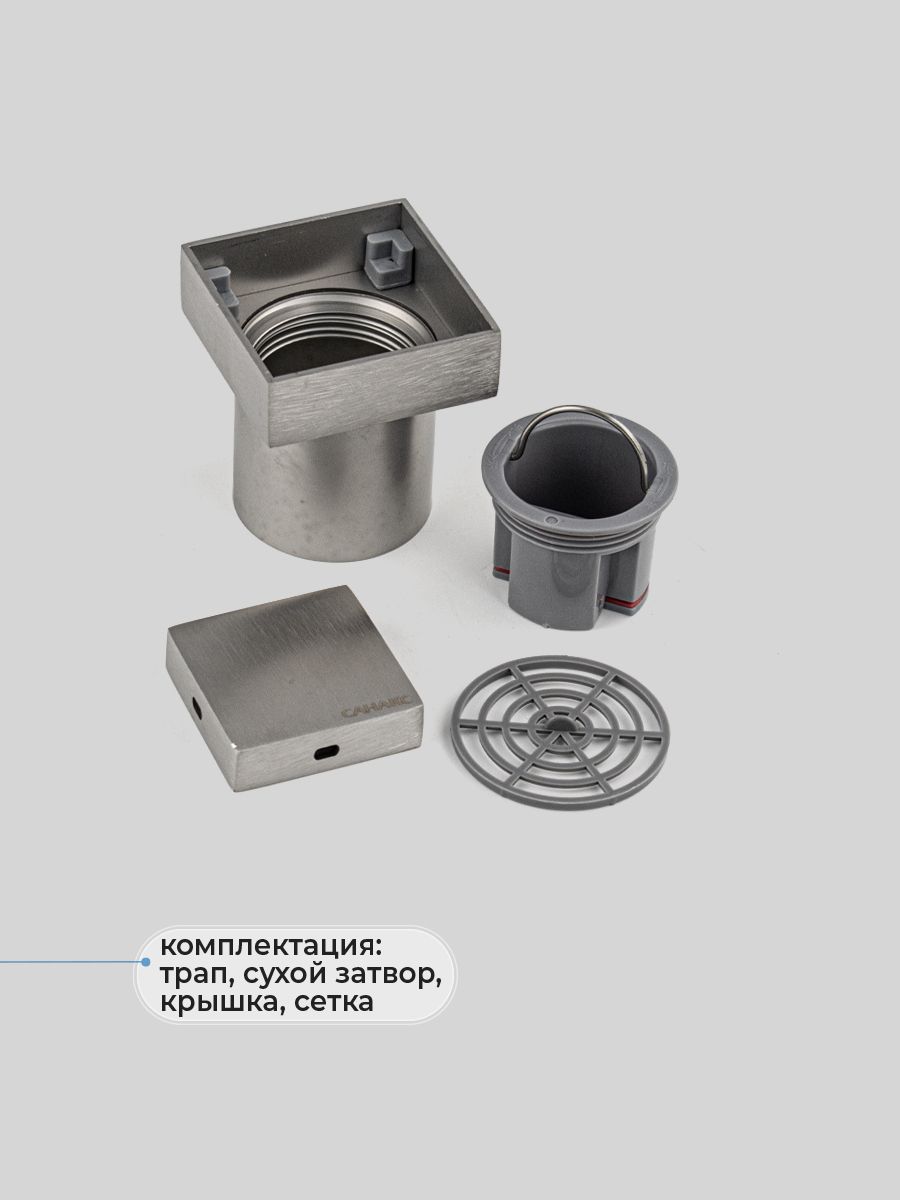 Трап для душа САНАКС из нержавеющей стали, цвет сатин, имеет уникальный затвор, который работает без гидрозатвора по принципу обратного клапана. В центре системы установлен клапан, который даже при незначительном попадании воды срабатывает на слив, а при отсутствии воды плотно перекрывает потоки запахов из канализации. Душевой сливной трап, цвет сатин, с литой крышкой, вертикальный – это специальный элемент сантехнических коммуникаций, предназначенный для отвода воды в систему канализации. Как правило, душевые трапы устанавливаются непосредственно в пол. Благодаря небольшим габаритам и высоте душевые трапы идеальны для установки в душевых зонах. Это важно для организации пространства, где нет возможности установить классическую ванну: в малогабаритных квартирах, студиях, совмещенных санузлах и т.п. Габаритные размеры: высота 65 мм, ширина 60 мм, длина 60 мм,толщина 20 мм, выход в канализацию 50 мм. Вес - 0,25 кг, объём - 0,00112 м3.