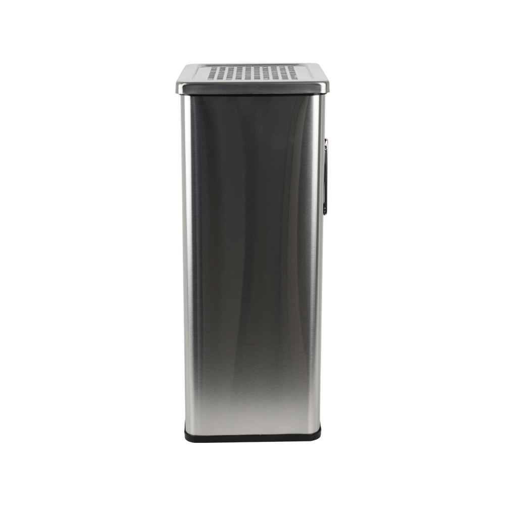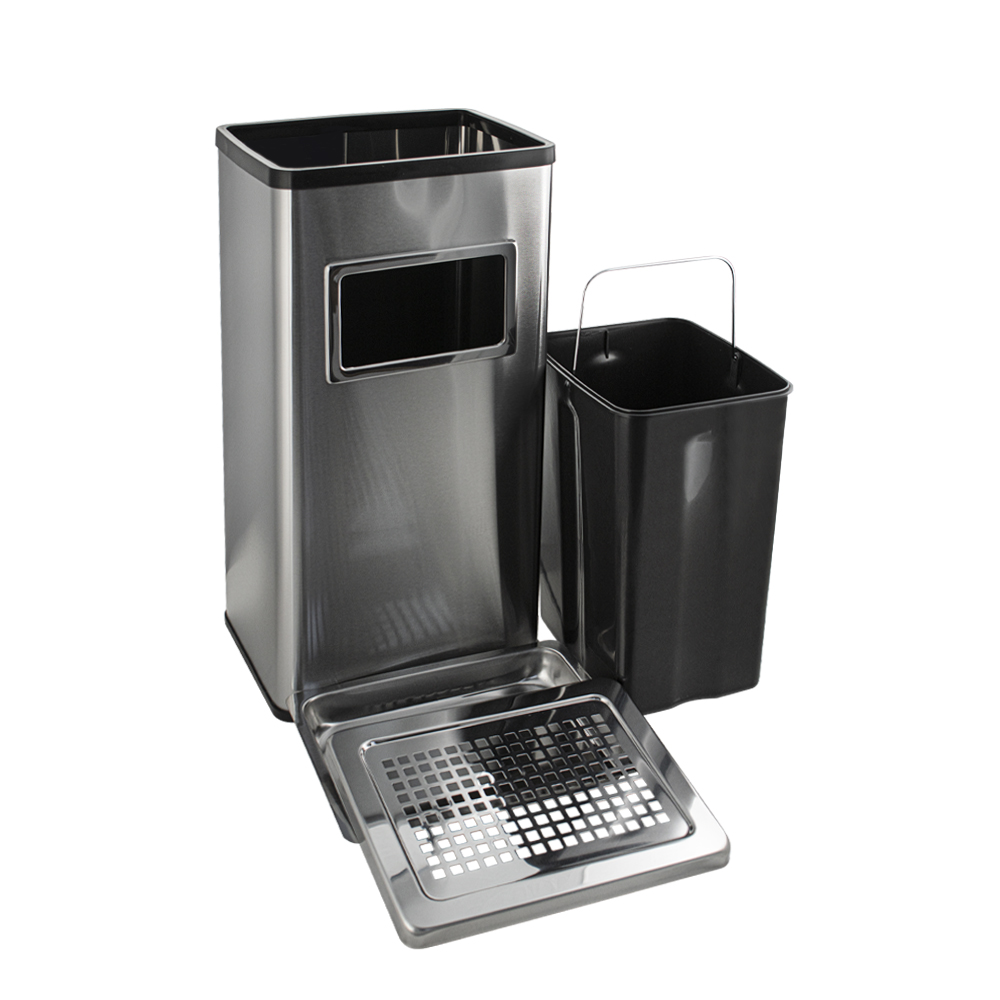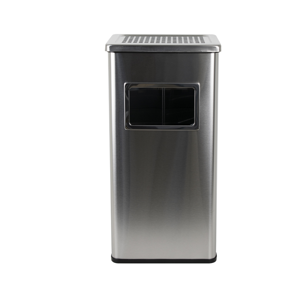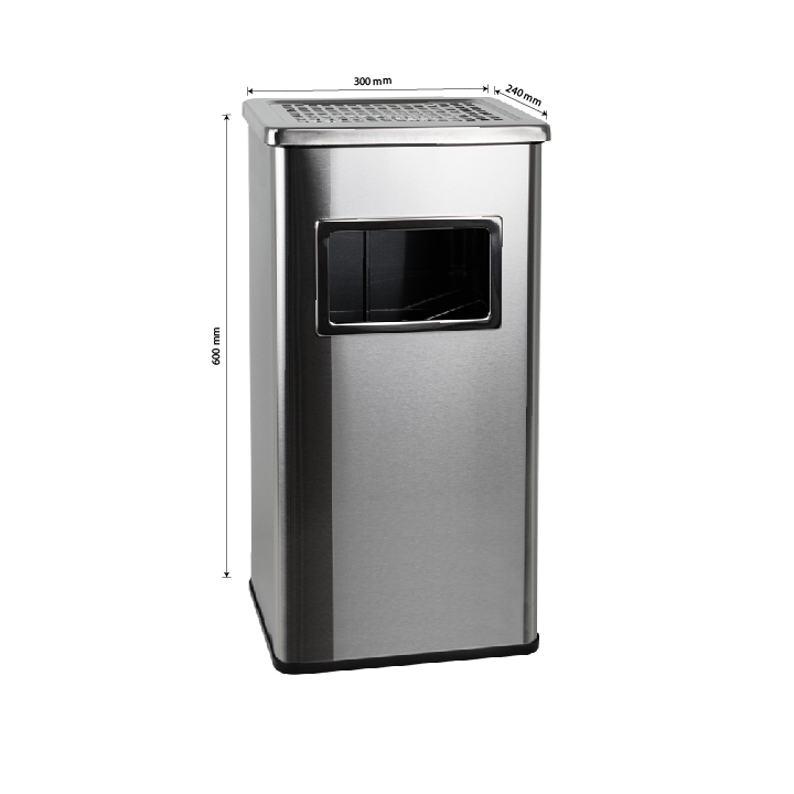 Урна с пепельницей квадратная, из нержавеющей стали SUS 410, цвет сатин. Верх состоит из съемной решетки с поддоном. Прочная и надежная для окурков и мелкого мусора идеально подходит для использования в офисах, общественных местах и других учреждениях. Изготовлена из нержавеющей стали и покрыта хромом. Благодаря большому объему в 40 л, способна вместить большое количество мусора. Легкость и компактность корзины позволяет перемещать её с одного места на другое. Габаритные размеры: высота 610 мм, ширина 300 мм, глубина 240 мм. Вес - 3,900 кг, объём - 0,05600 м3.