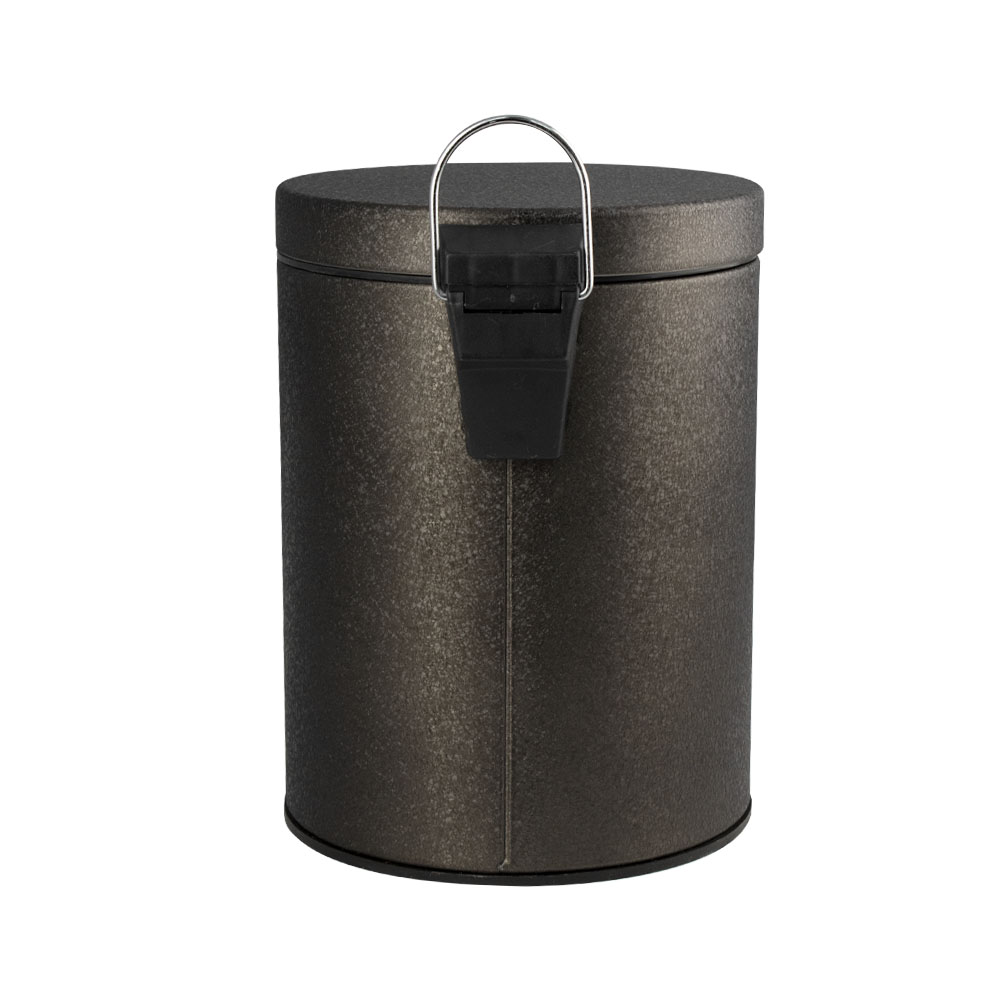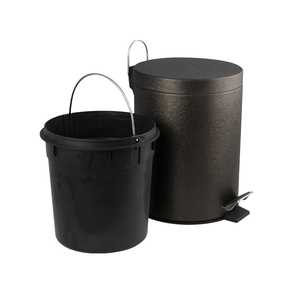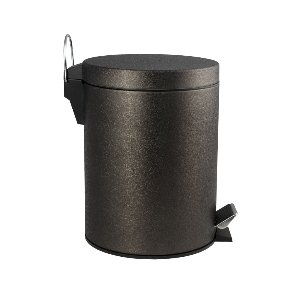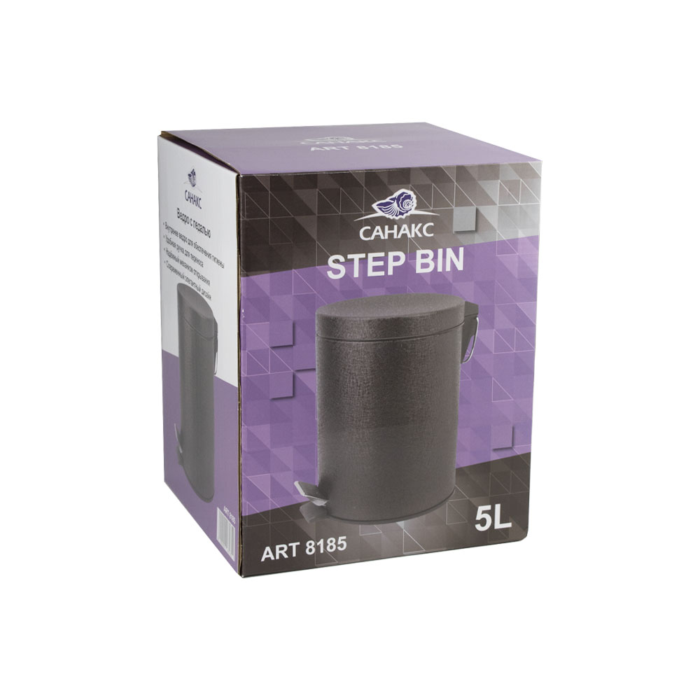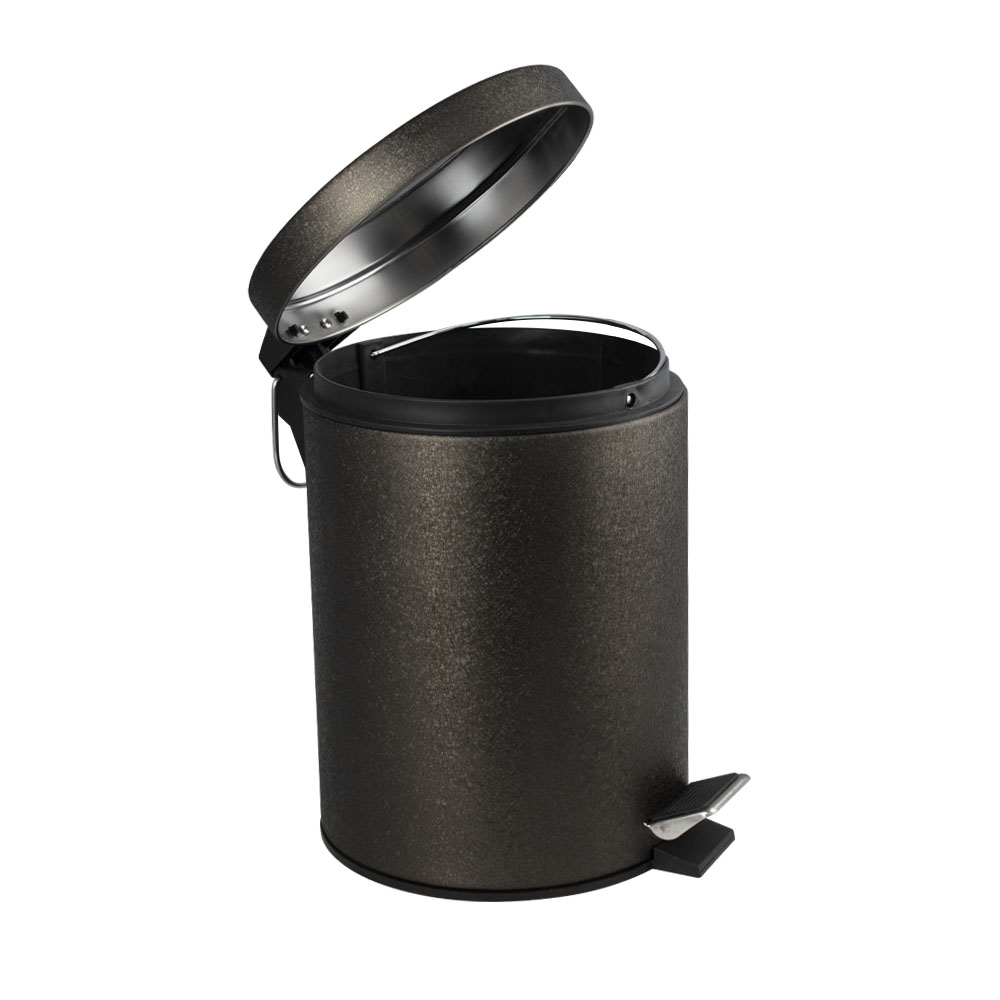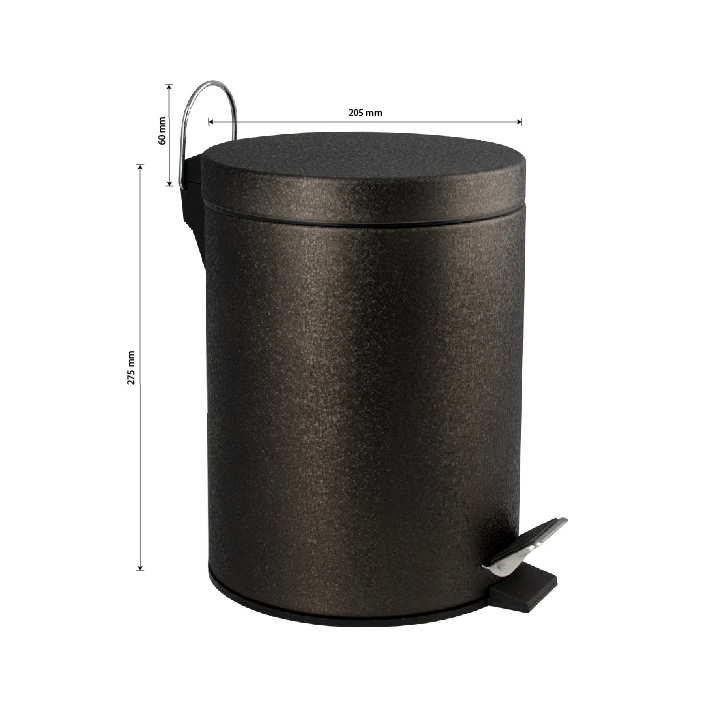 Круглое ведро с покрытием под слюду для хранения мусора, с педалью и откидной крышкой, прекрасно подойдет для ванной комнаты, туалета или кухни и офиса. Ведро оснащено пластиковым гигиеническим контейнером с металлической ручкой для переноса и механизмом поднятия крышки, при помощи нажатия на педаль. Объём ведра 5 литров. Отличное решение для утилизации мелкого бытового мусора. Наличие крышки обеспечивает защиту от неприятных запахов и распространения бактерий, а педальная система открывания позволяет не прикасаться к баку руками. Благодаря современному дизайну ведро впишется в интерьер любой кухни и ванной комнаты. Преимущества ведра для мусора с педалью: удобно устанавливается и перемещается на любое место; изготовлено из устойчивой к коррозии нержавеющей стали с покрытием под слюду, матовое; пользоваться изделием удобно и гигиенично благодаря педали в нижней части корпуса. Нескользящая пластиковая основа ведра предотвращает повреждение пола. Габаритные размеры: высота 275 мм, диаметр 205 мм. Вес - 1,100 кг