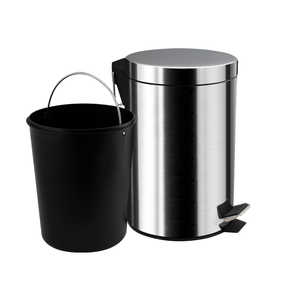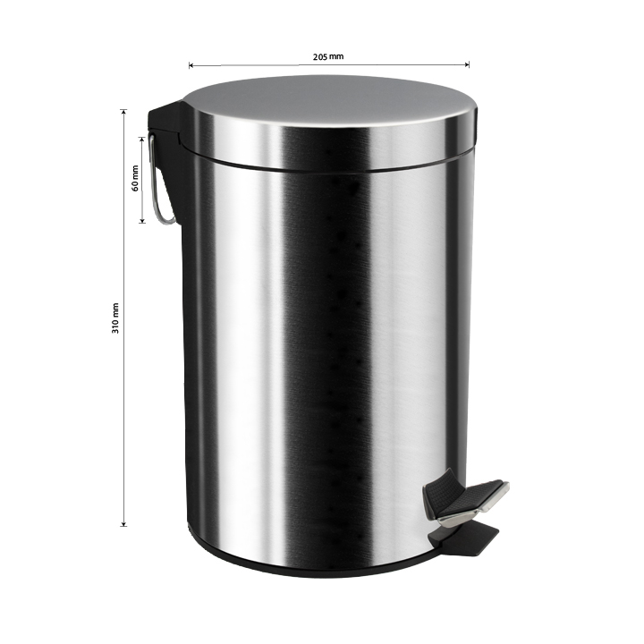 Круглое хромированное ведро для хранения мусора с педалью и откидной крышкой, прекрасно подойдет для ванной комнаты, туалета или кухни и офиса. Нержавеющая сталь SUS 410. Ведро оснащено пластиковым гигиеническим контейнером с металлической ручкой для переноса и механизмом поднятия крышки, при помощи нажатия на педаль. Объём ведра 7 литров. Отличное решение для утилизации мелкого бытового мусора. Наличие крышки обеспечивает защиту от неприятных запахов и распространения бактерий, а педальная система открывания позволяет не прикасаться к баку руками. Благодаря современному дизайну ведро впишется в интерьер любой кухни и ванной комнаты. Преимущества ведра для мусора с педалью: удобно устанавливается и перемещается на любое место; изготовлено из устойчивой к коррозии нержавеющей стали с хромированным покрытием; пользоваться изделием удобно и гигиенично благодаря педали в нижней части корпуса. Нескользящая пластиковая основа ведра предотвращает повреждение пола. Габаритные размеры: высота 310 мм, диаметр 205 мм.