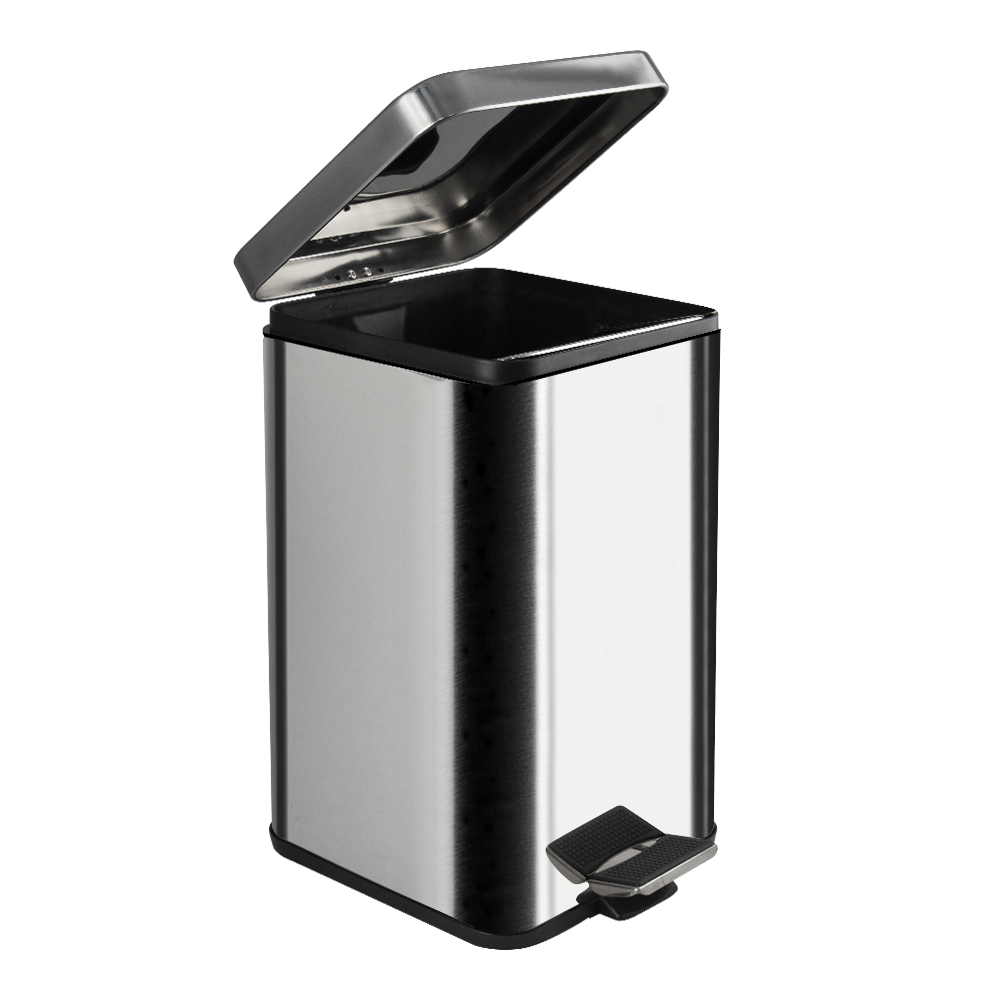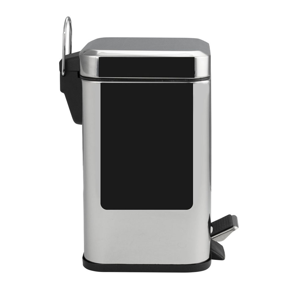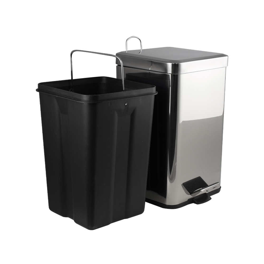 Квадратное хромированное ведро для хранения мусора, с педалью и откидной крышкой, прекрасно подойдет для ванной комнаты, туалета или кухни и офиса, нержавеющая сталь SUS 410. Ведро оснащено пластиковым гигиеническим контейнером с металлической ручкой для переноса и механизмом поднятия крышки, при помощи нажатия на педаль. Объём ведра 12 литров. Отличное решение для утилизации мелкого бытового мусора. Наличие крышки обеспечивает защиту от неприятных запахов и распространения бактерий, а педальная система открывания позволяет не прикасаться к баку руками. Благодаря современному дизайну ведро впишется в интерьер любой кухни и ванной комнаты. Преимущества ведра для мусора с педалью: удобно устанавливается и перемещается на любое место; изготовлено из устойчивой к коррозии нержавеющей стали с хромированным покрытием; пользоваться изделием удобно и гигиенично благодаря педали в нижней части корпуса. Нескользящая пластиковая основа ведра предотвращает повреждение пола. Габаритные размеры: высота 380 мм, ширина 225 м