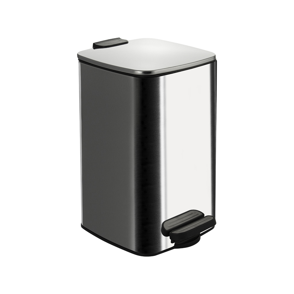 Ведро для мусора с педалью и откидной крышкой с функцией микролифт, прекрасно подойдет для ванной комнаты, туалета или кухни и офиса. Нержавеющая сталь SUS 410. Ведро оснащено пластиковым гигиеническим контейнером с металлической ручкой для переноса и механизмом поднятия крышки, при помощи нажатия на педаль. Объём ведра 8 литров. Отличное решение для утилизации мелкого бытового мусора. Наличие крышки обеспечивает защиту от неприятных запахов и распространения бактерий, а педальная система открывания позволяет не прикасаться к баку руками. Благодаря современному дизайну ведро впишется в интерьер любой кухни и ванной комнаты. Преимущества ведра для мусора с педалью: удобно устанавливается и перемещается на любое место; изготовлено из устойчивой к коррозии нержавеющей стали хромированного цвета; пользоваться изделием удобно и гигиенично благодаря педали в нижней части корпуса. Нескользящая пластиковая основа ведра предотвращает повреждение пола. Габаритные размеры: высота 325 мм, ширина 195 мм, длина 205 мм. Вес