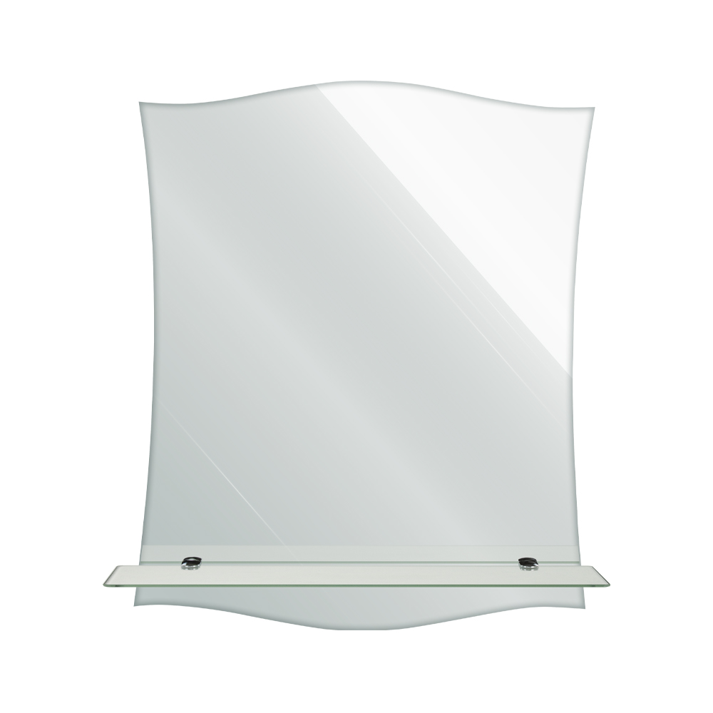 Зеркало с полкой. Простота и качество делают зеркало практичным дополнением к интерьеру ванной комнаты, прихожей или гардеробной. Модель не занимает много места на стене и поможет реализовать разные дизайнерские идеи. Особая обработка кромки украшает изделие, придавая ему аккуратный и законченный вид. Зеркало изготовлено из полотна AGC Mirox, толщина зеркального полотна 4 мм. Изделие демонстрирует значительную устойчивость к влажности помещения и перепаду температур. Профессиональный универсальный крепеж в комплекте, подходит для всех типов стен. Габаритные размеры: высота 570 мм, ширина 480 мм, длина полки 500 мм. Вес - 3,300 кг, объём - 0,01000 м3.