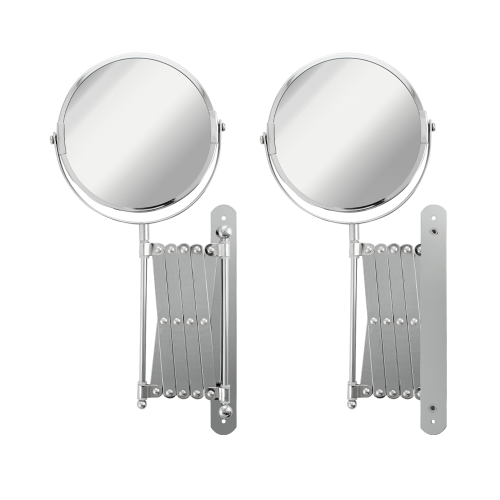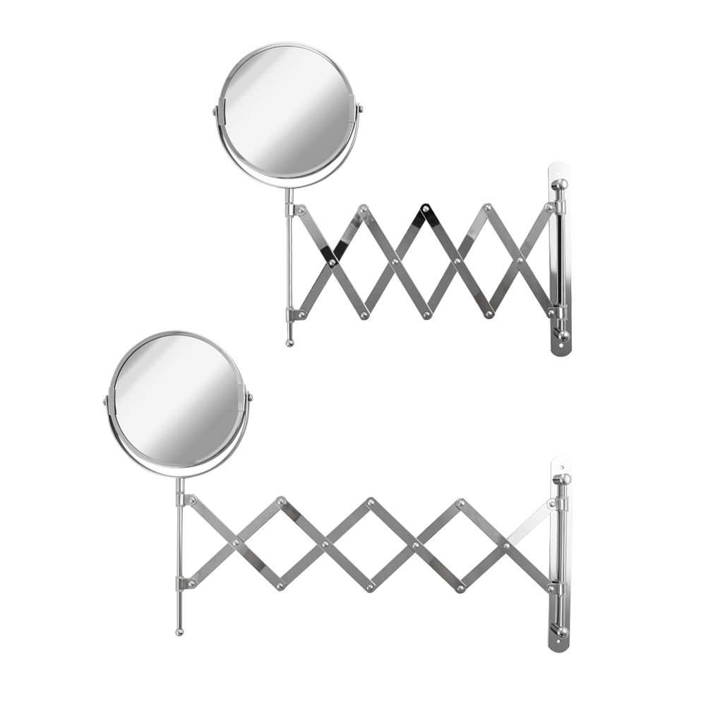 Зеркало настенное, косметическое, раздвижное, двустороннее, с увеличительным эффектом. Изготовлено из прочной нержавеющей стали с хромированным покрытием, которое придает безупречный стильный вид и долговечность. Хромированное покрытие очень стойко переносит истирания и обеспечивает зеркальный блеск изделия. Установлено на металлический хромированный держатель, позволяющий поворачиваться вокруг своей оси и регулировать угол наклона модели. Снабжено механизмом «гармошка», которое позволяет зеркалу выдвигаться на требуемое расстояние и компактно складываться. Одна из сторон зеркала имеет 3х-кратное увеличение удобное для косметических процедур, нанесения макияжа и бритья. Монтируется к стене при помощи крепления, входящего в комплект. Габаритные размеры: диаметр 135 мм, высота 340 мм, длина от 100 до 600 мм. Вес - 0,800 кг, объём - 0,00320 м3.