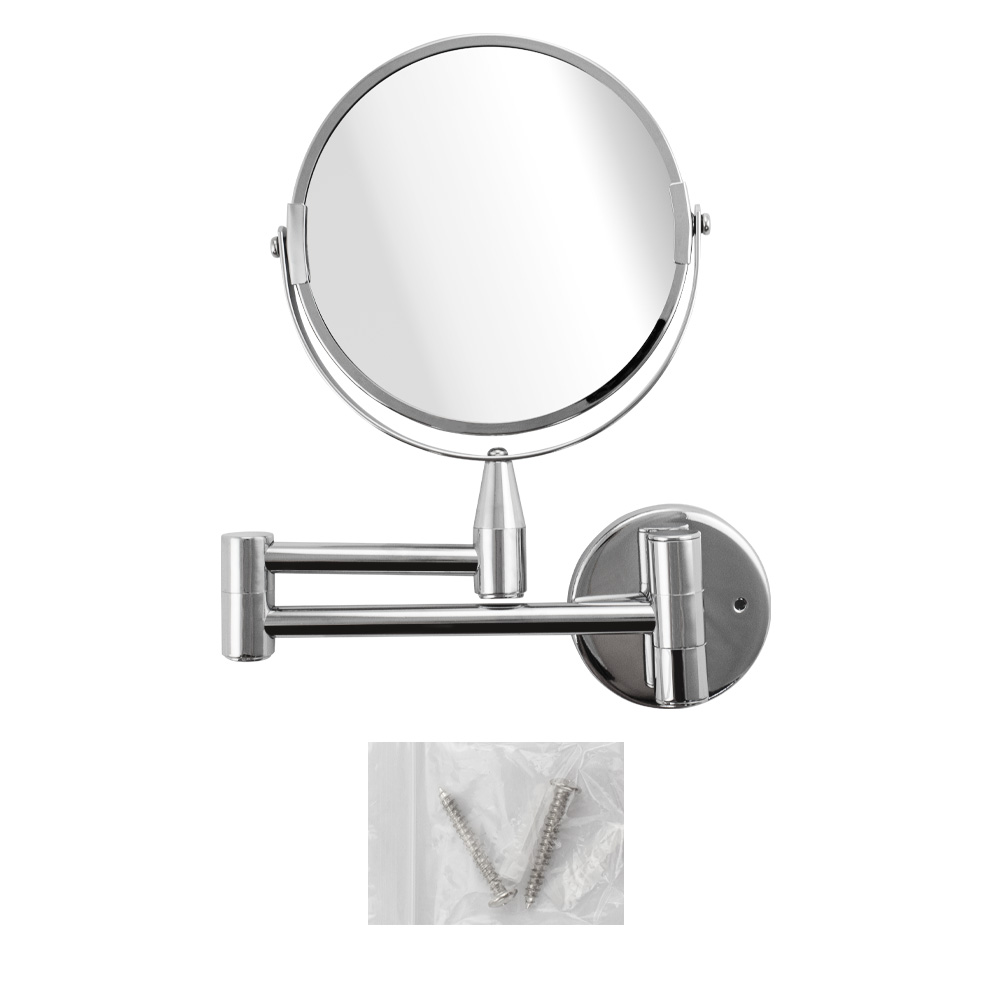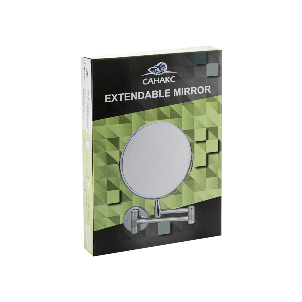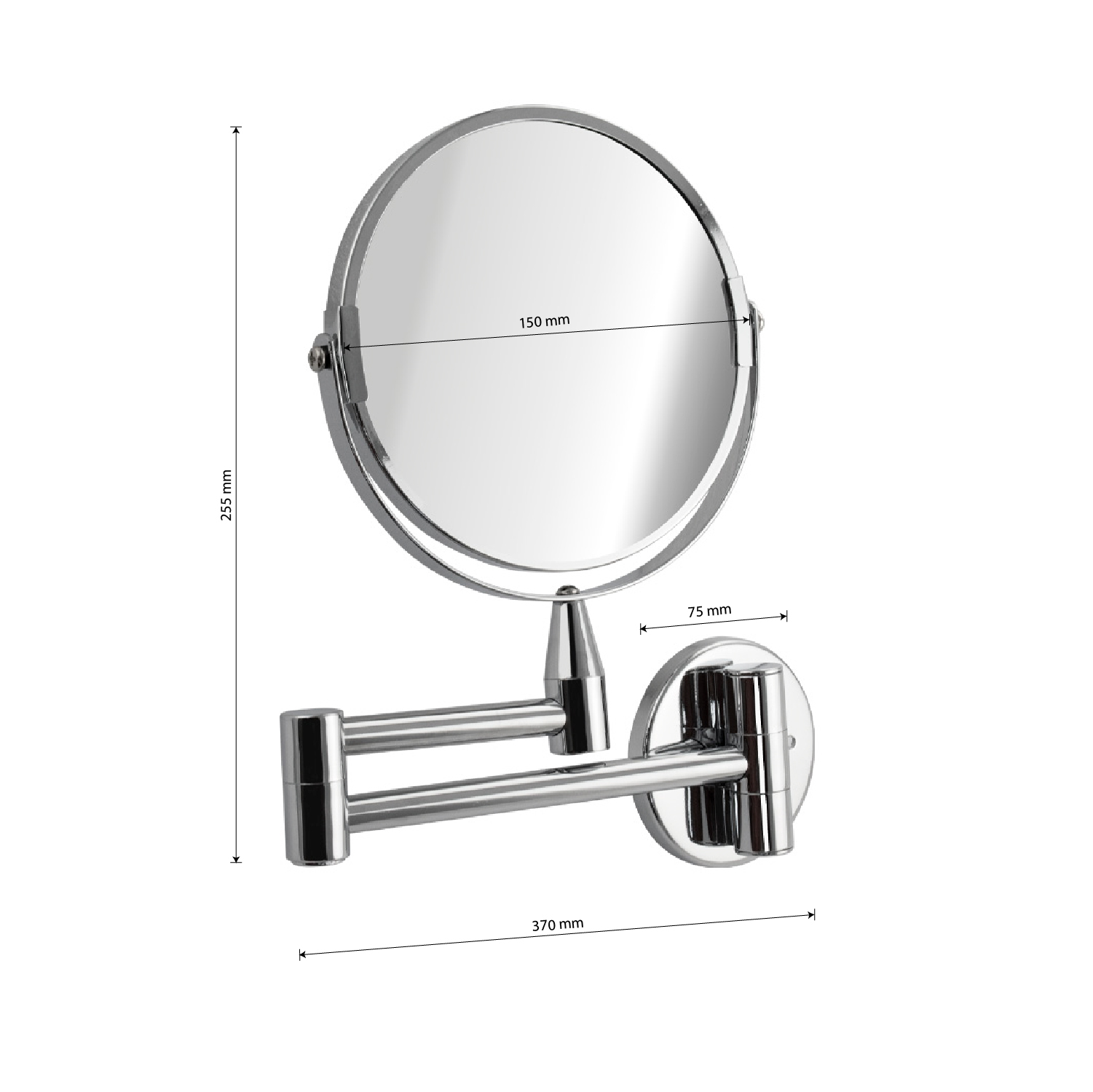 Зеркало настенное, косметическое, раздвижное, двустороннее, с увеличительным эффектом. Изготовлено из прочной нержавеющей стали с хромированным покрытием, которое придает безупречный стильный вид и долговечность. Хромированное покрытие очень стойко переносит истирания и обеспечивает зеркальный блеск изделия. Установлено на металлический хромированный держатель, позволяющий поворачиваться вокруг своей оси и регулировать угол наклона модели. Снабжено складным механизмом «коленце», которое позволяет зеркалу выдвигаться на требуемое расстояние и компактно складываться. Одна из сторон зеркала имеет 3х-кратное увеличение удобное для косметических процедур, нанесения макияжа и бритья. Монтируется к стене при помощи крепления, входящего в комплект. Габаритные размеры: диаметр 150 мм, высота 255 мм, общая длина 370 мм, диаметр пятака 75 мм. Вес - 0,600 кг, объём - 0,00320 м3.